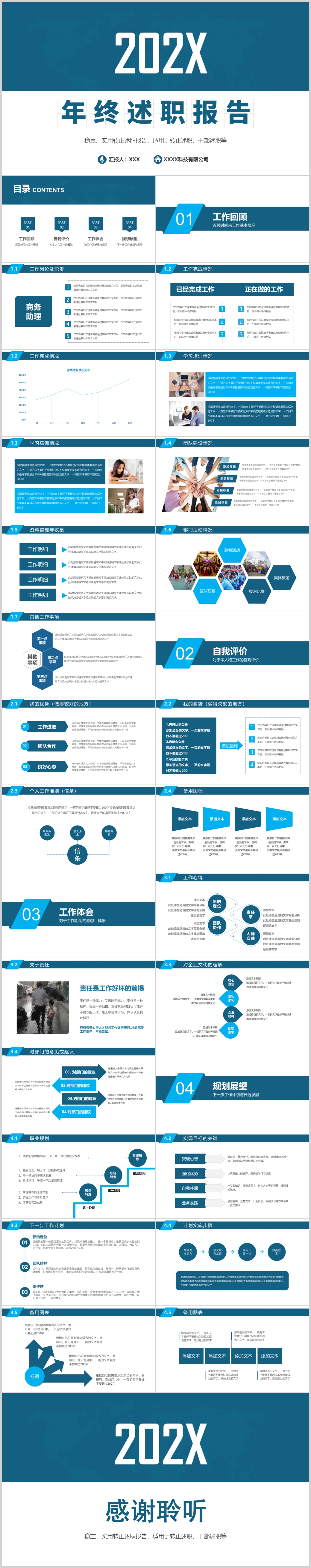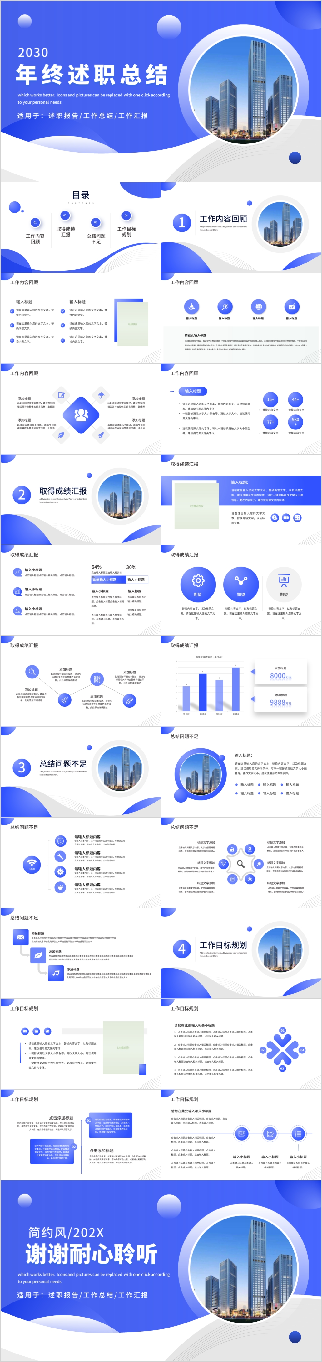 2023年蓝色商务年终工作总结汇报新年计划ppt模板
