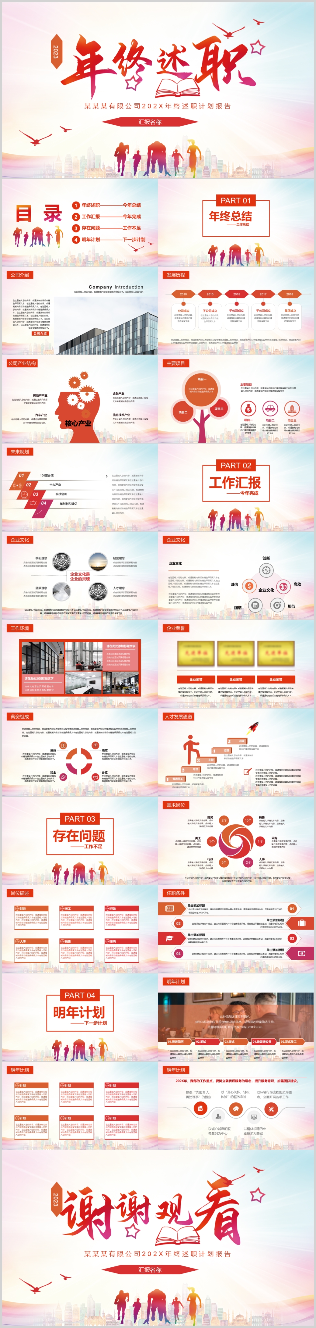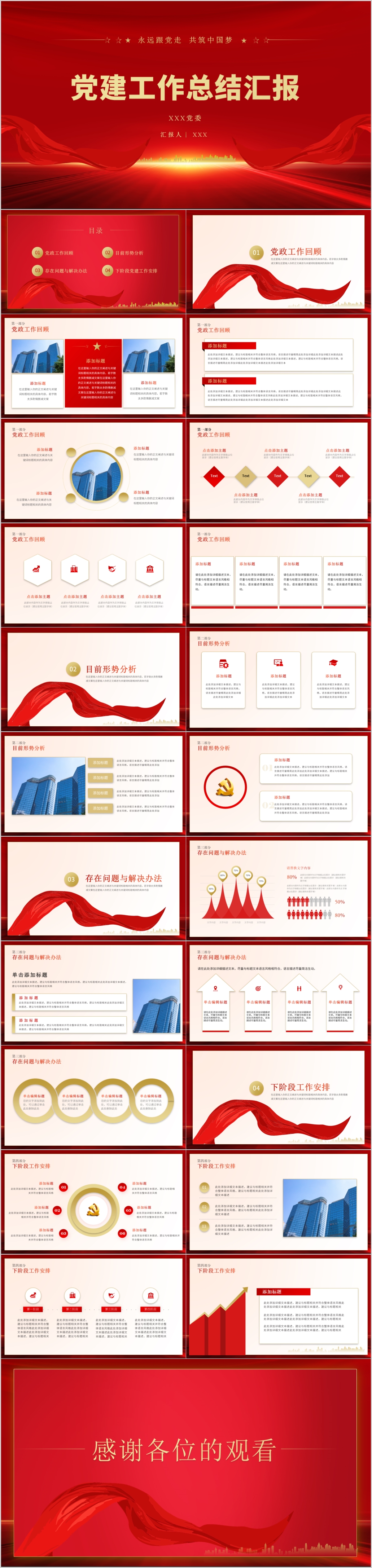 红色2023年党建年终述职工作汇报总结开展计划通用ppt模板