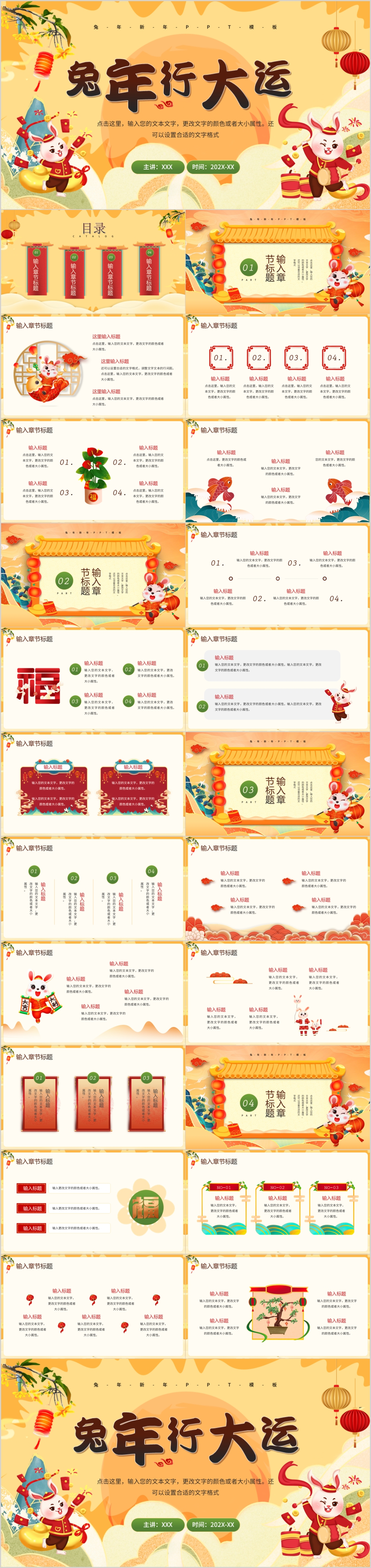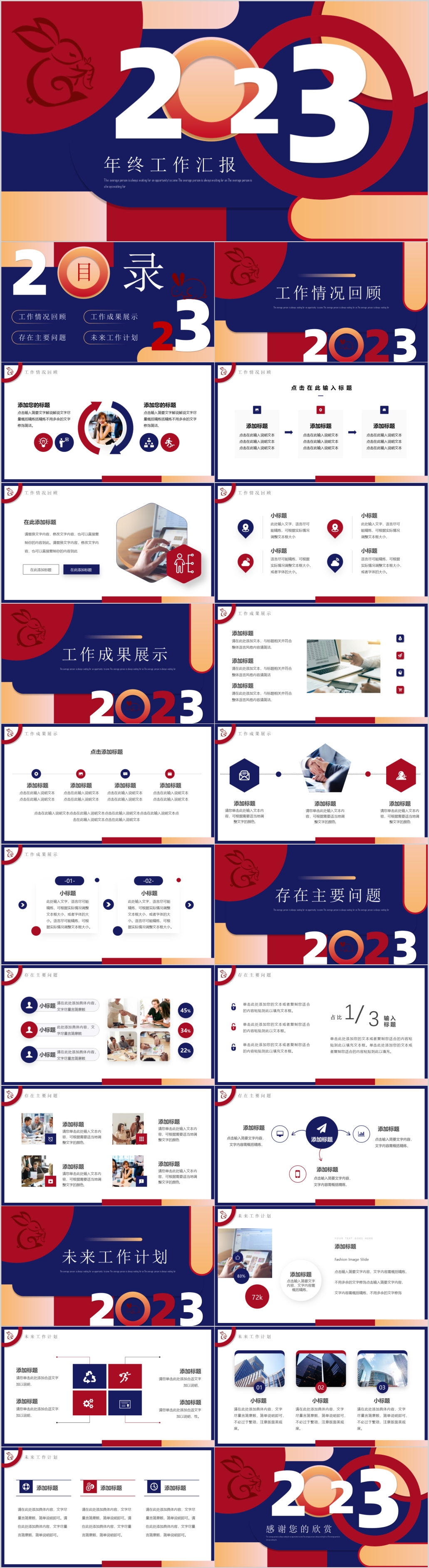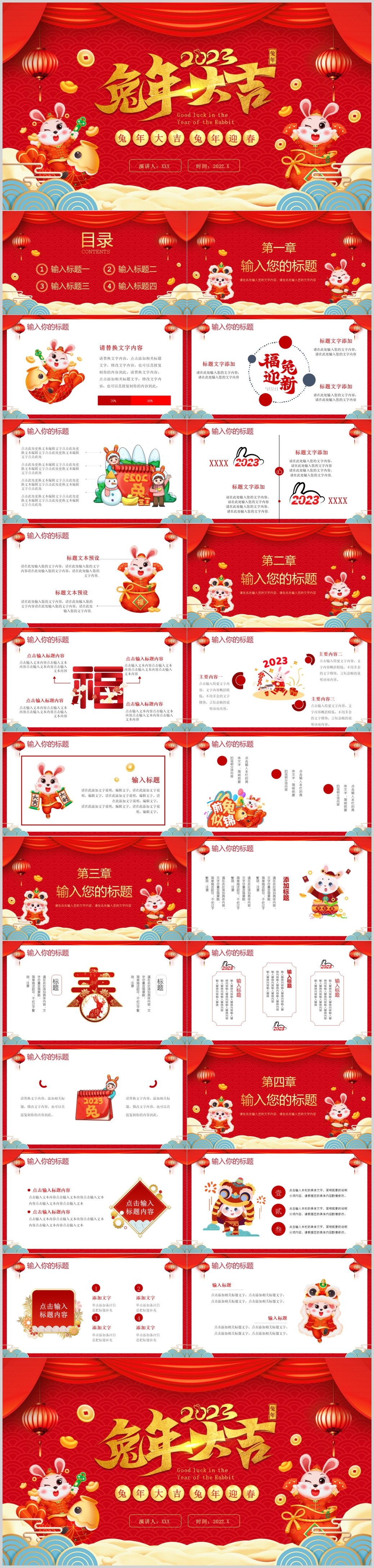 2023红色喜庆兔年大吉年终工作总结汇报ppt模板