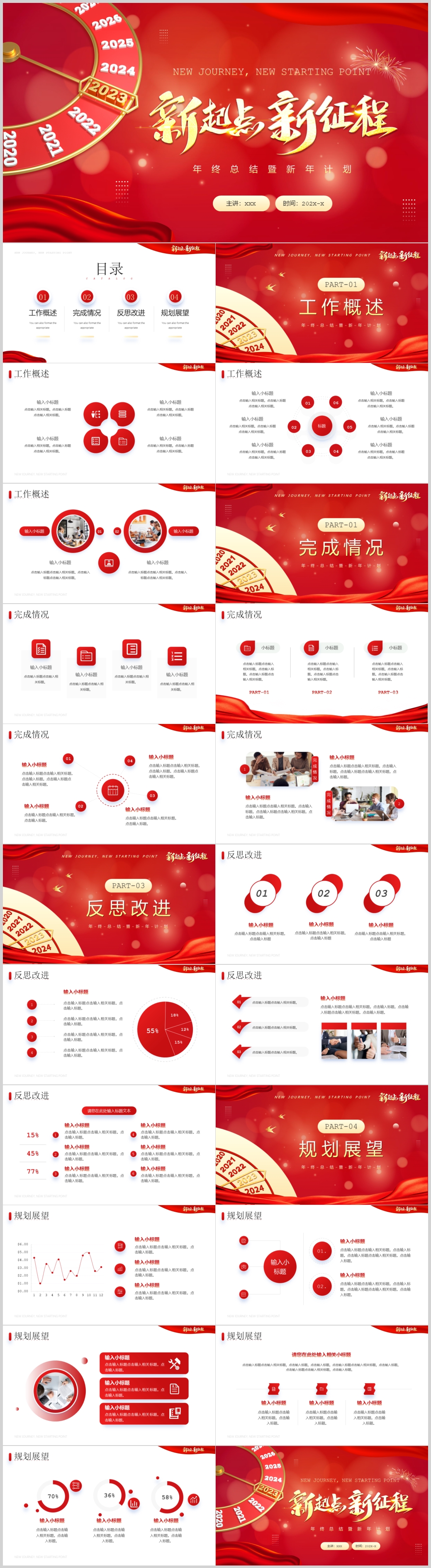 创意2023年红色年终工作总结暨新年计划ppt模板