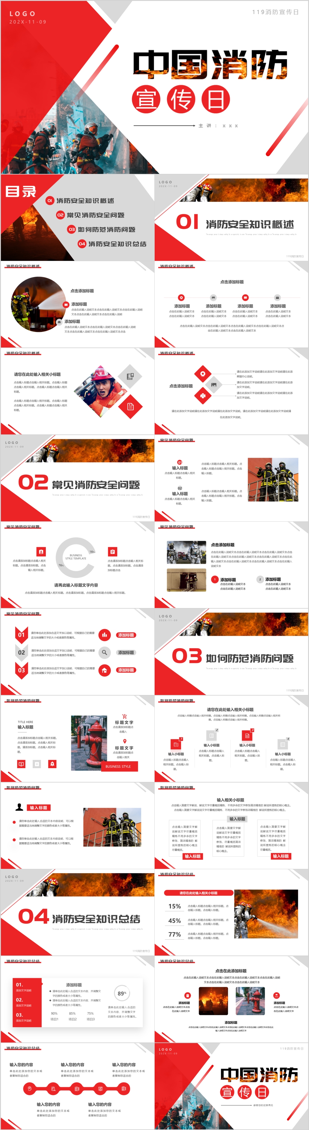 红色119消防宣传日中国消防宣传日通用活动介绍PPT模板