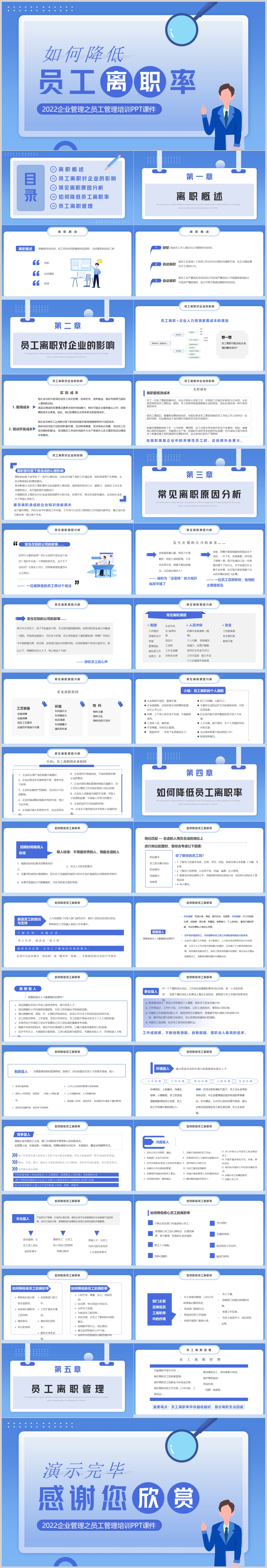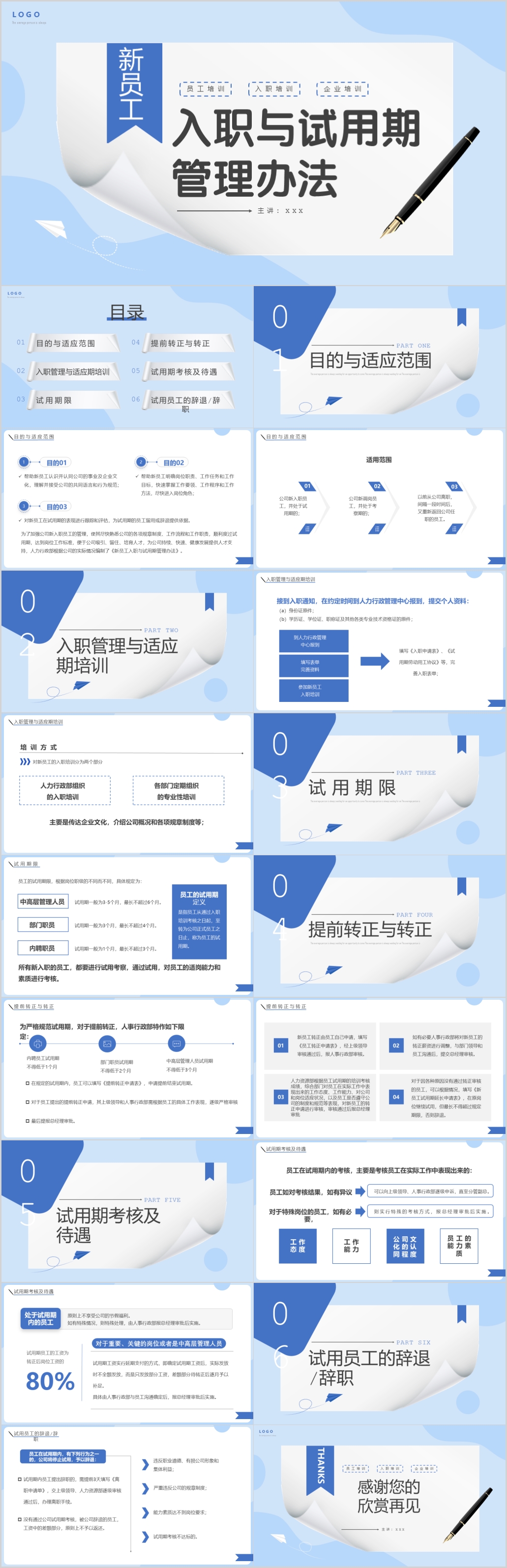 简约蓝色新员工入职与试用期管理办法培训PPT模板