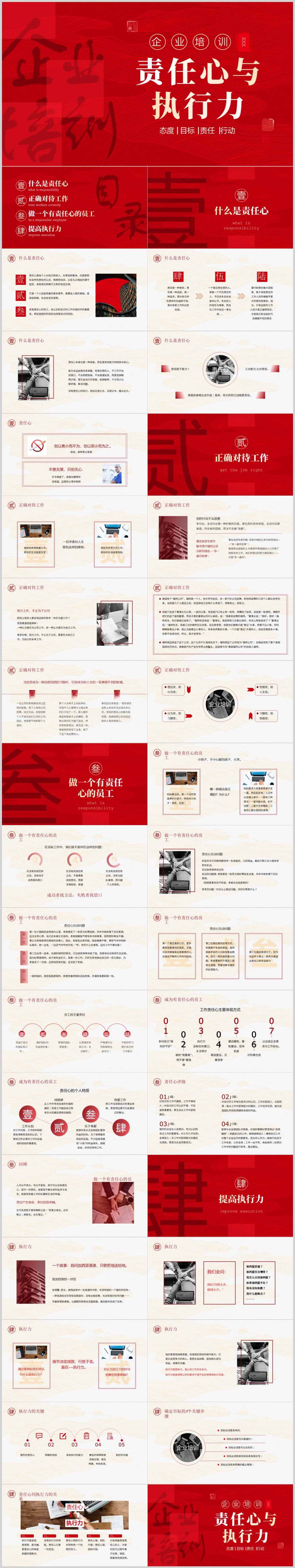 红色励志企业员工培训责任心与执行力培训PPT模板