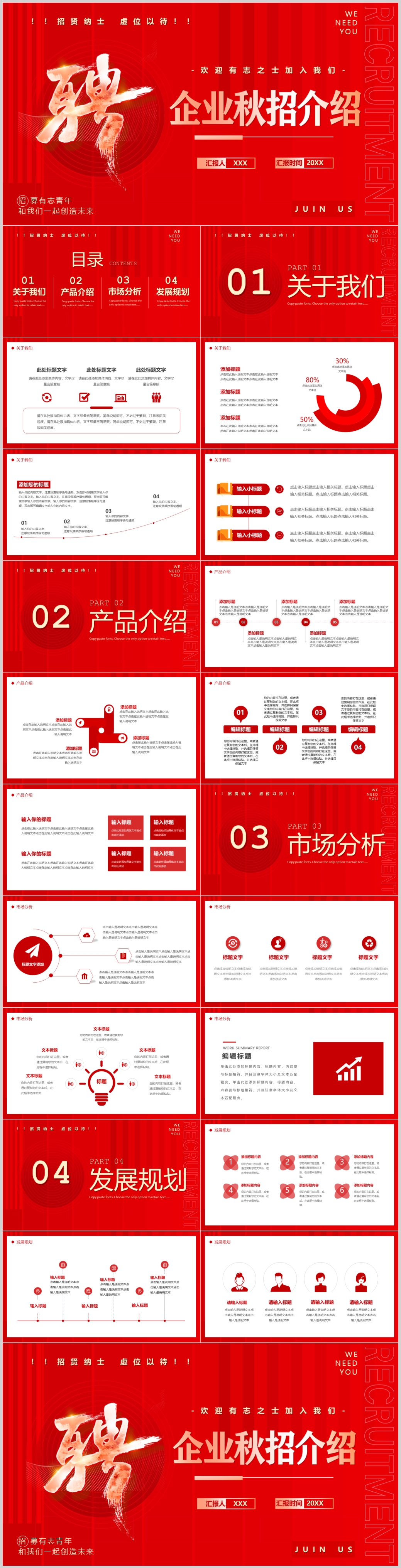 红色秋季招聘校园招聘企业人才招聘ppt模板