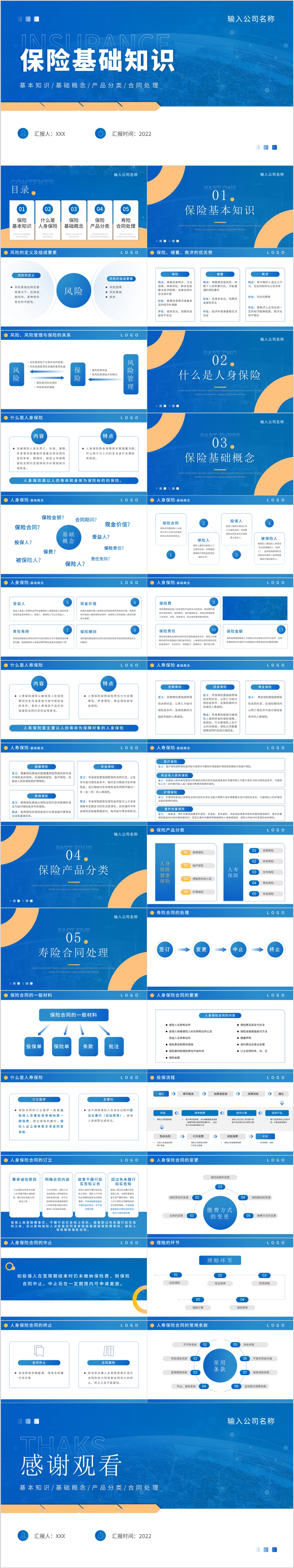 蓝色保险基础知识保险产品合同处理培训课件PPT模板