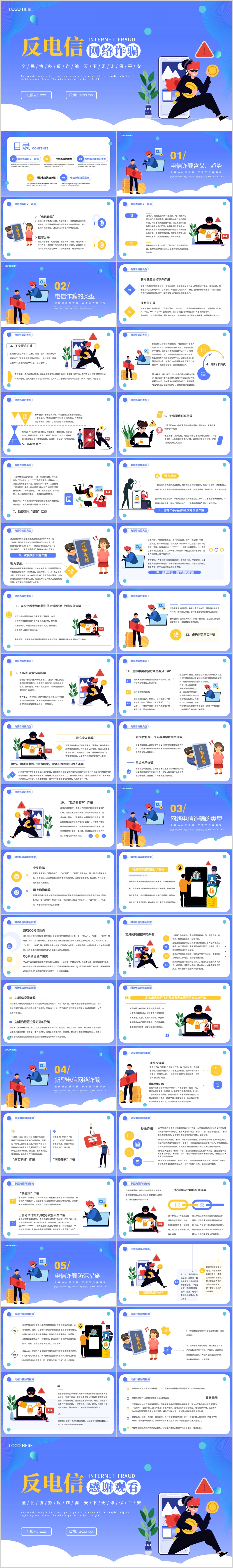 蓝色防诈反诈预防电信诈骗网络诈骗安全知识培训ppt模板