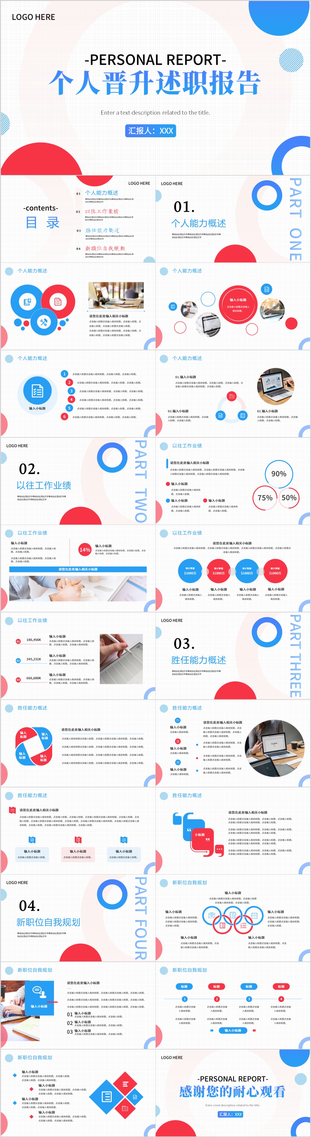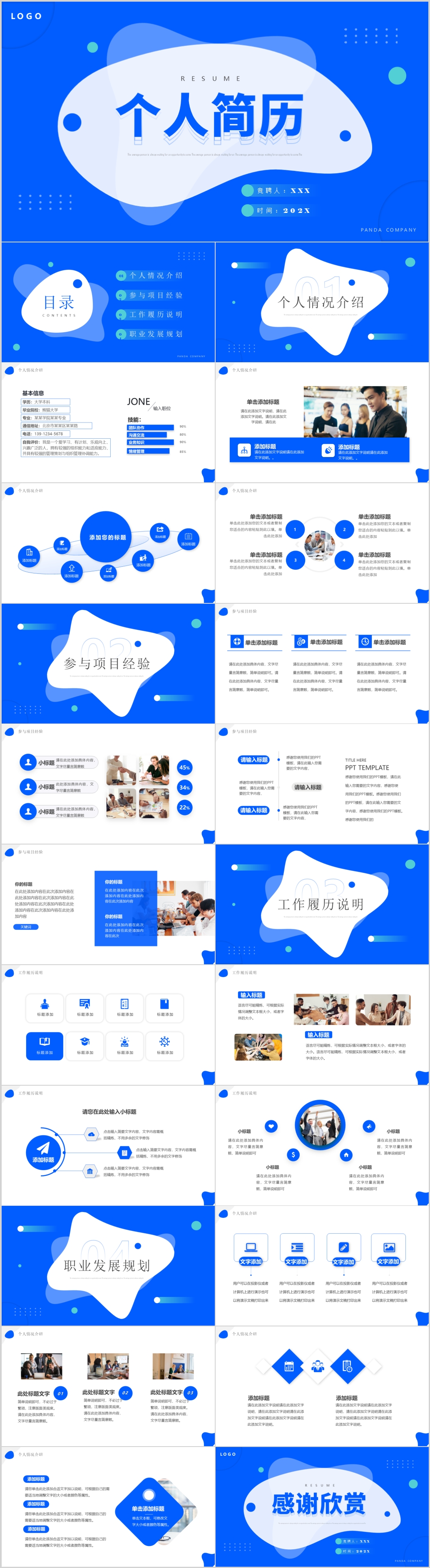 2023年蓝色个人简历岗位竞聘述职PPT模板