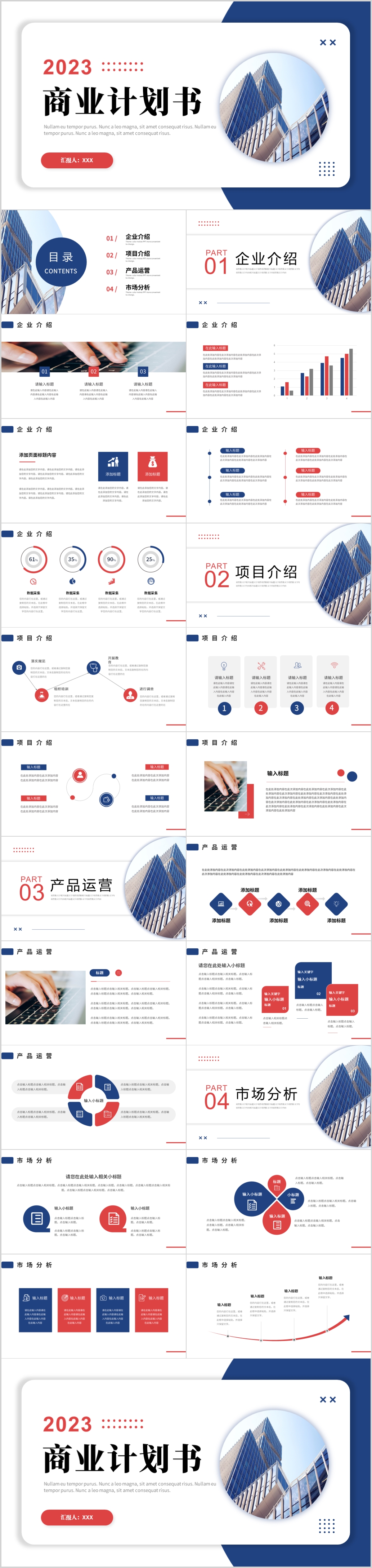 红蓝商务风简约风商业计划书融资发展PPT模板