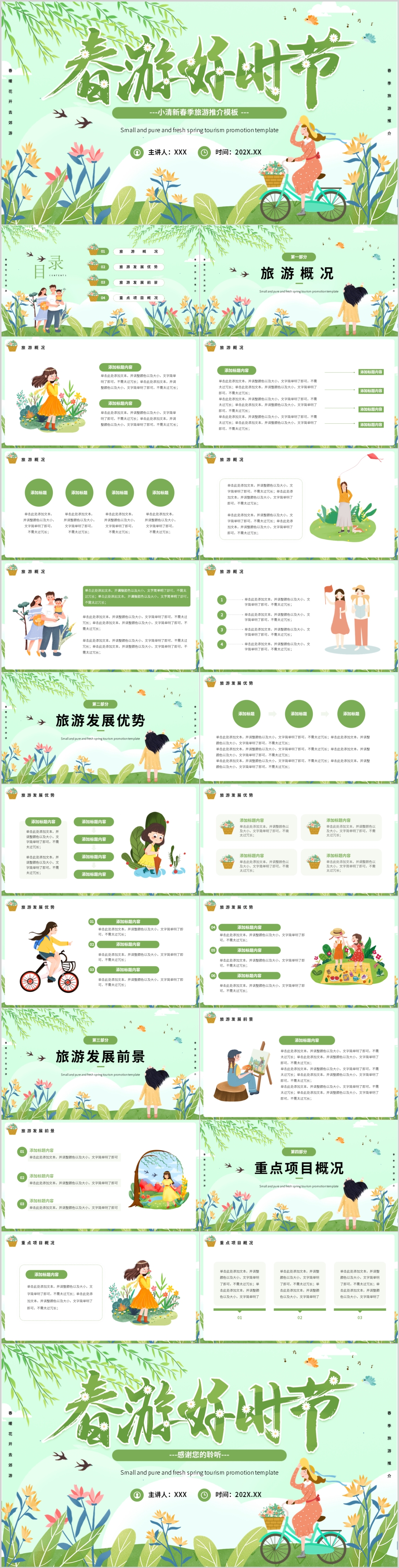 绿色小清新唯美春天春季踏青春游春暖花开PPT模板