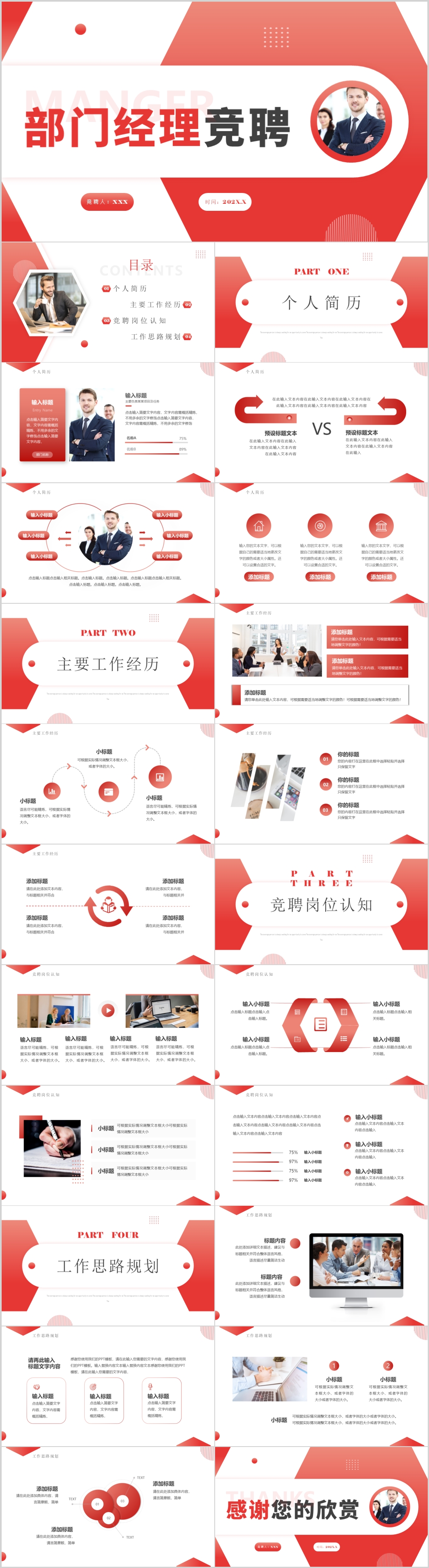 红色简约商务通用部门经理竞聘报告ppt模板