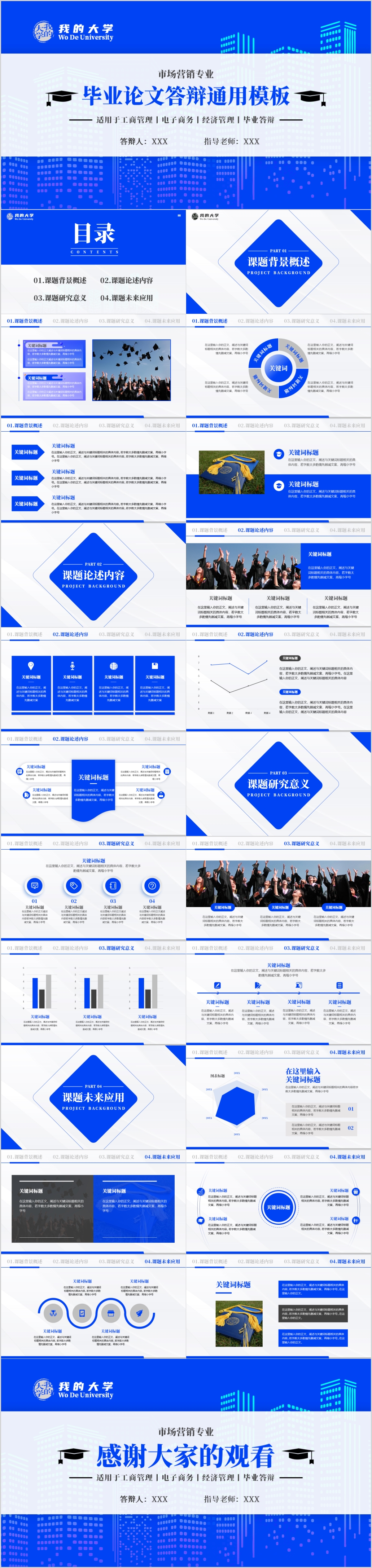 蓝色简约毕业答辩毕业论文开题报告ppt模板
