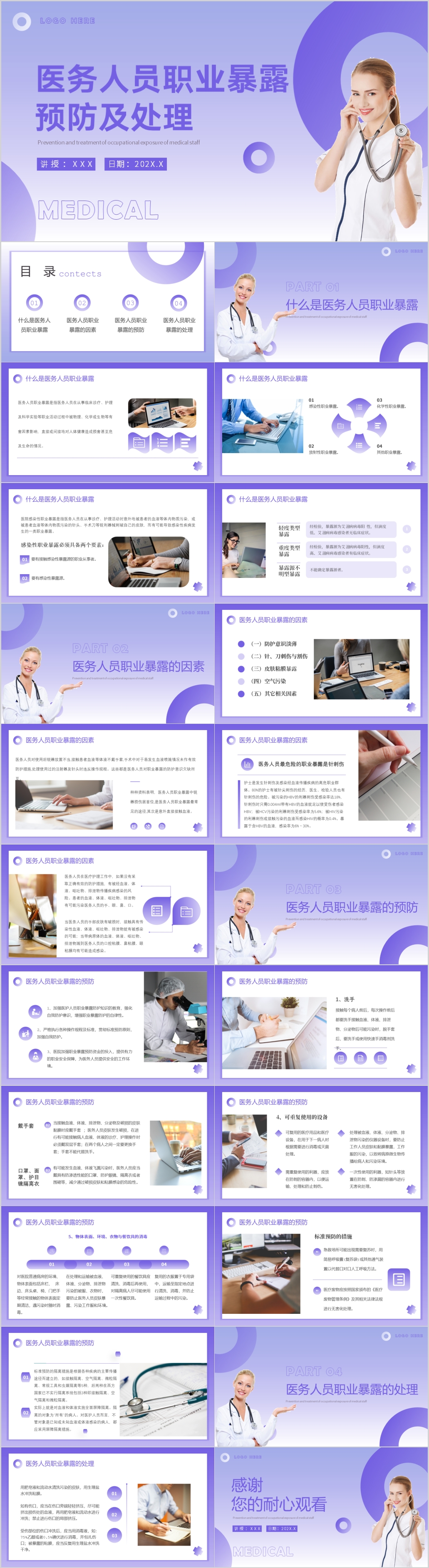 简约医务人员职业暴露预防及处理培训课件PPT模板