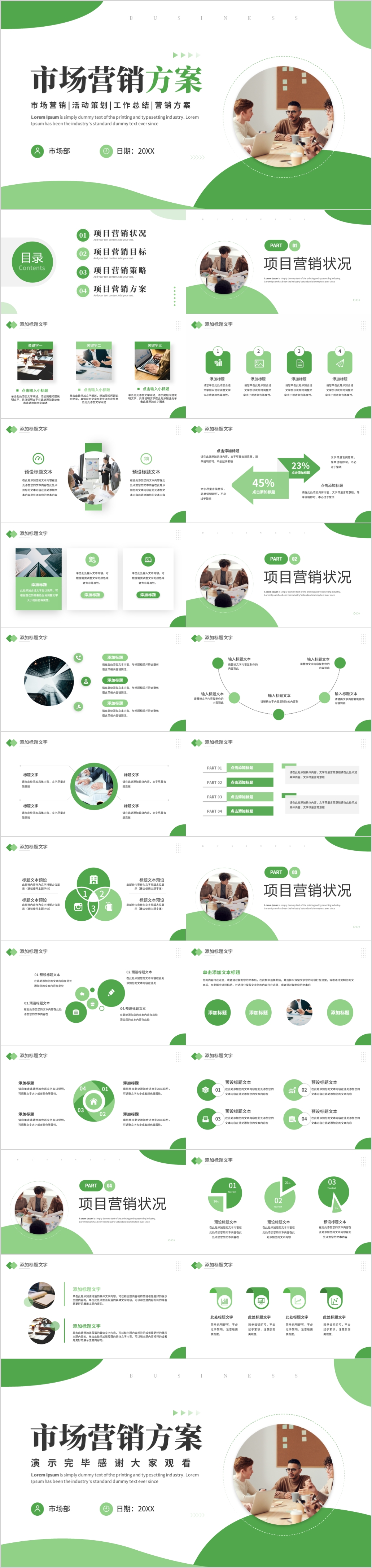 绿色简约商务风市场营销计划方案PPT模板