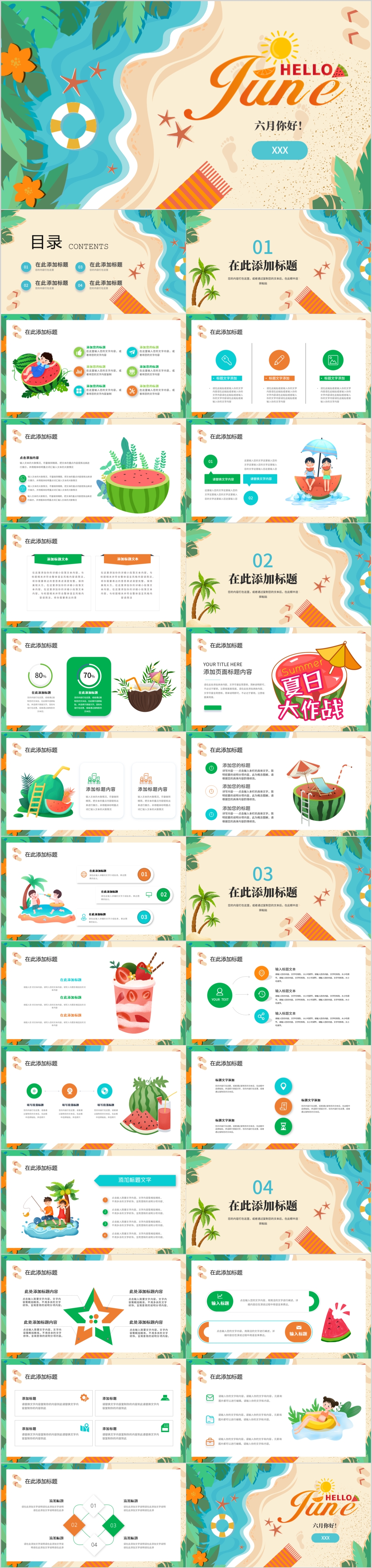 卡通你好六月通用PPT模板