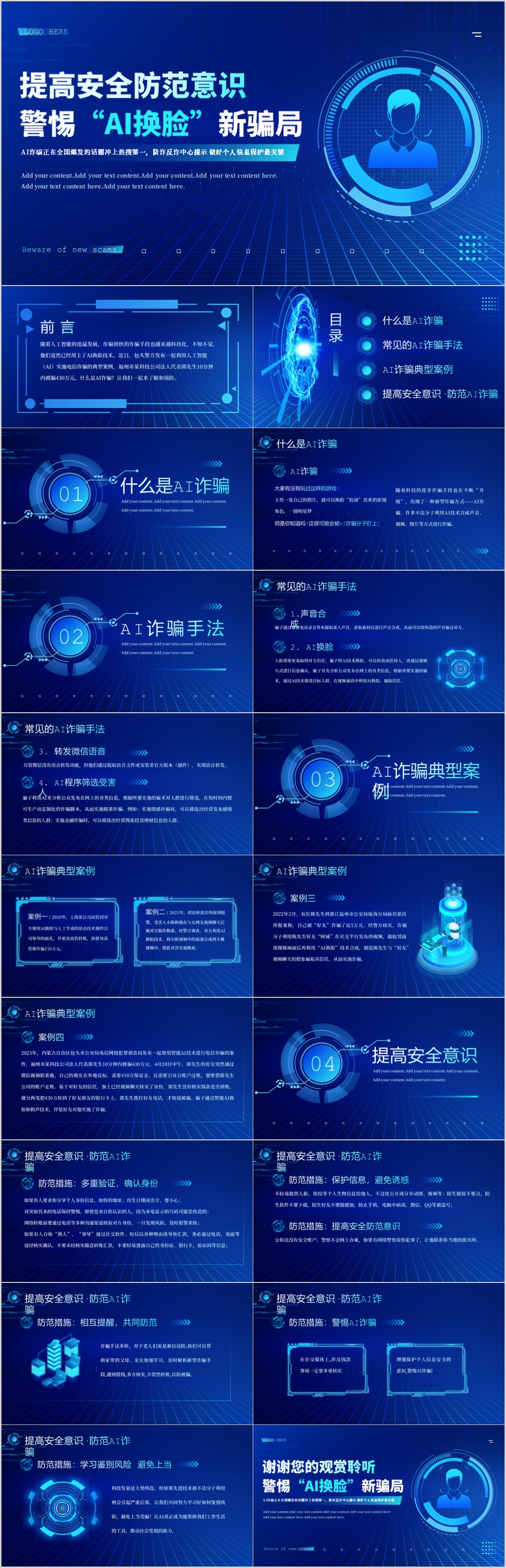 蓝色谨防AI诈骗宣传教育PPT模板