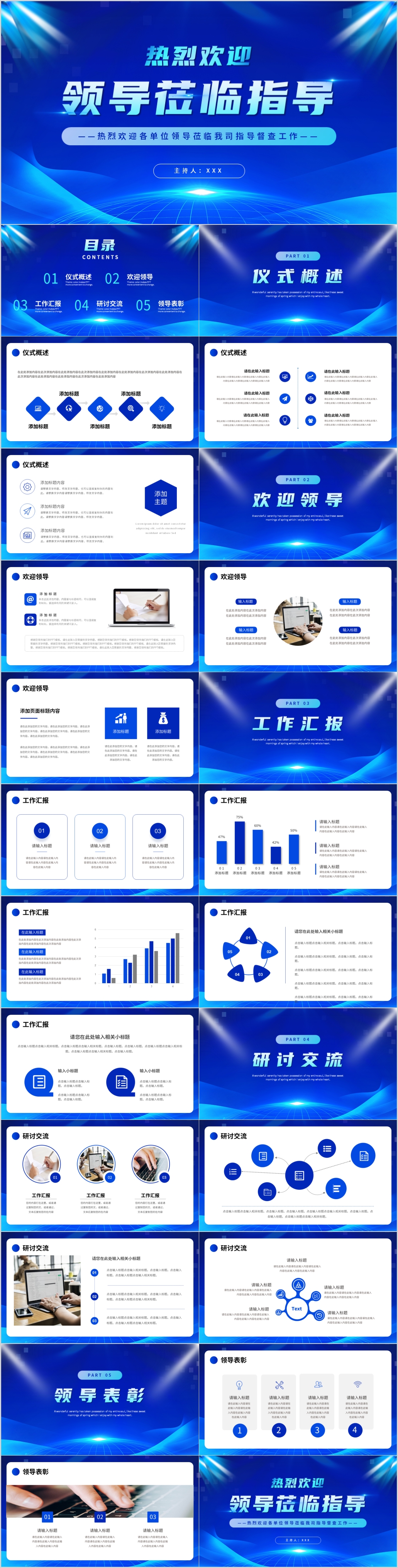 蓝色简约大气热烈欢迎领导莅临指导工作通用PPT模板