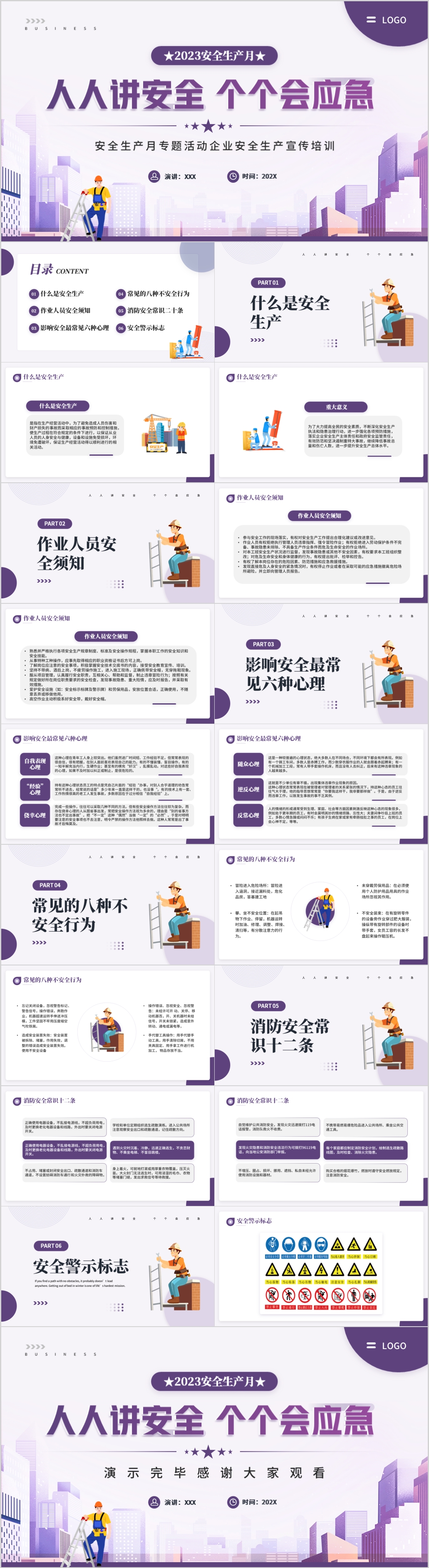 2023简约人人讲安全个个会应急安全生产月主题教育ppt模板