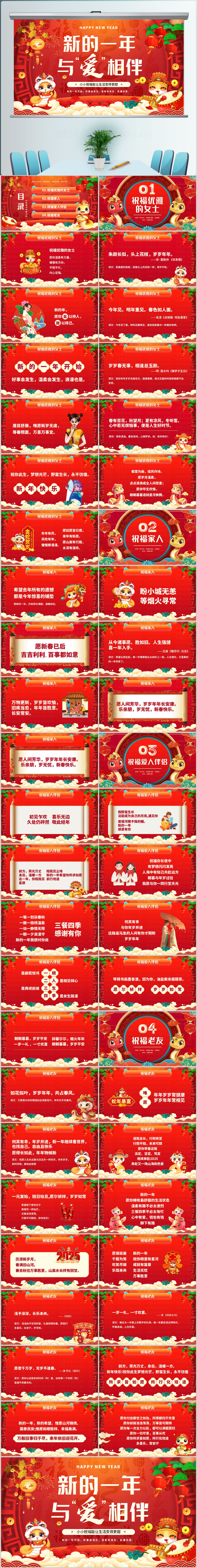 中国风新的一年与爱相伴PPT模板设计