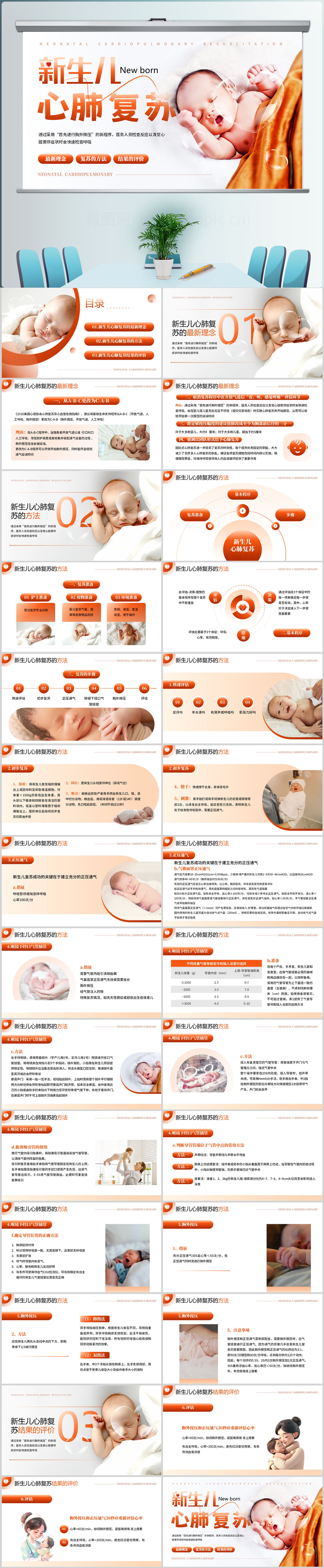 简约风新生儿心肺复苏知识PPT模板