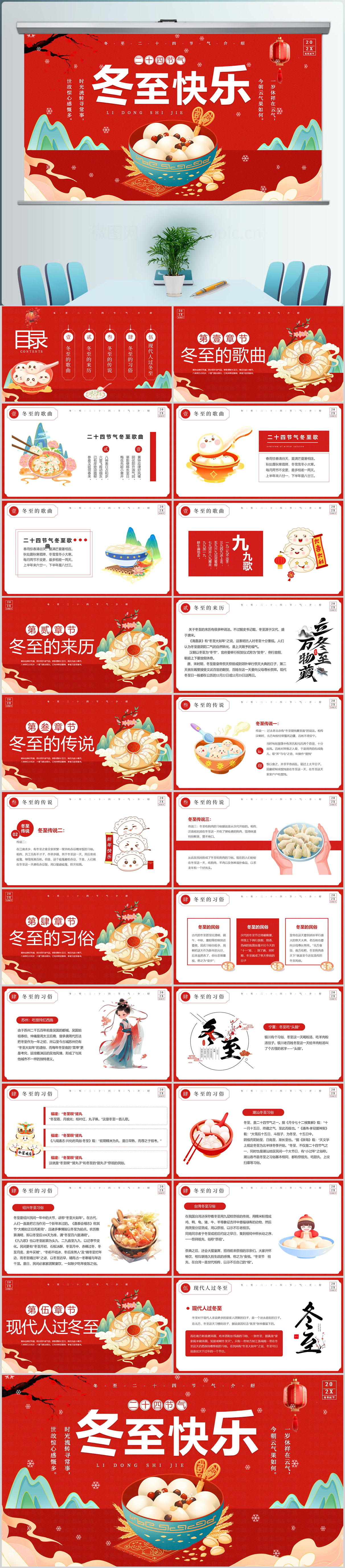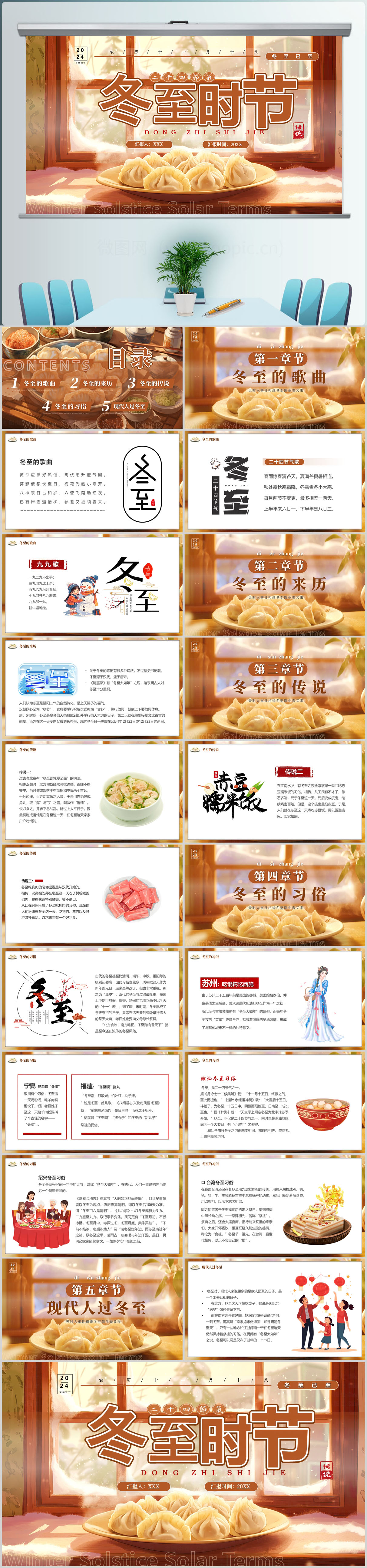 24节气冬至节动态PPT模板设计