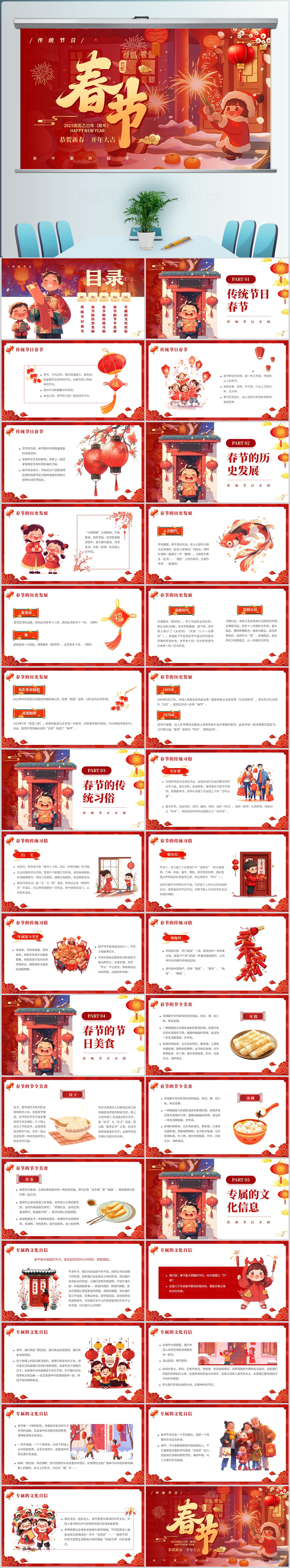 红色简约风春节中国传统节日介绍PPT模板设计