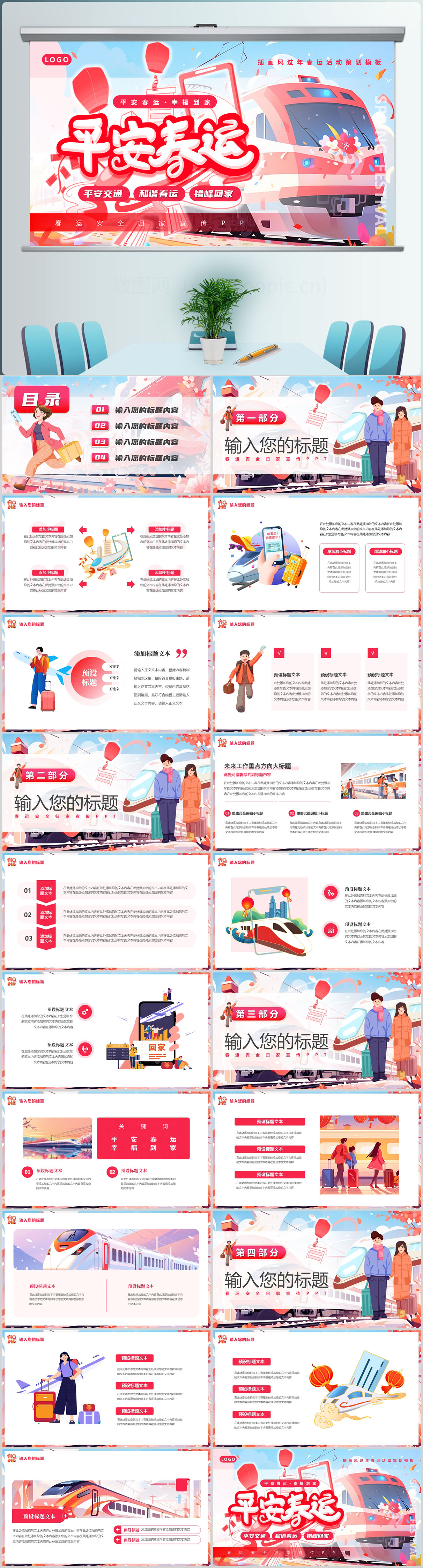 红色平安春运铁路年终工作计划PPT模板设计