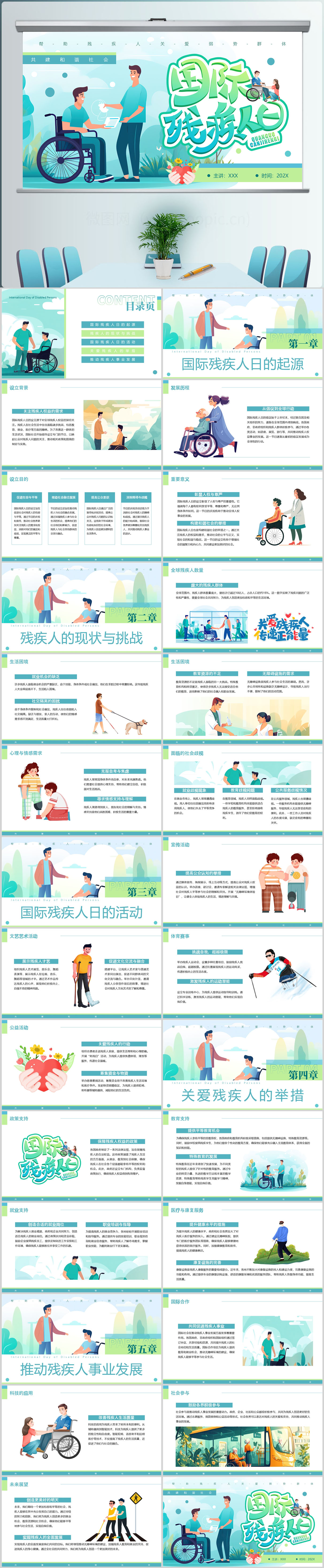 123国际残疾人日教育主题PPT模板设计