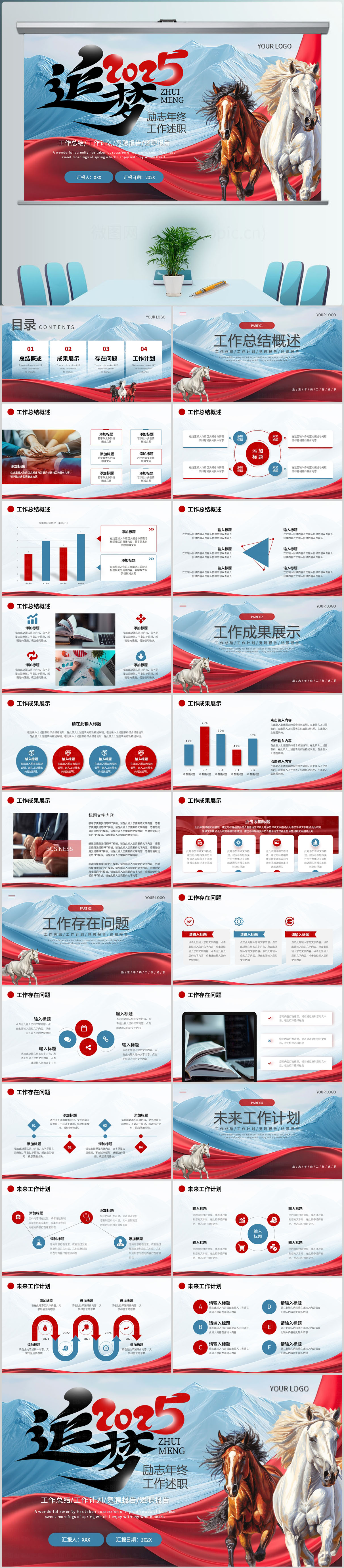 红蓝色追梦2025年终工作述职报告ppt模板设计