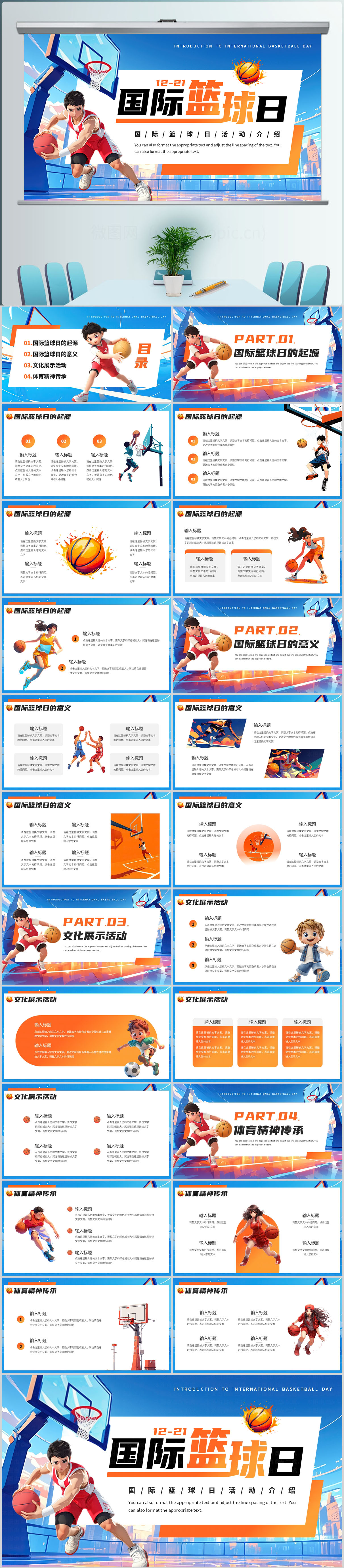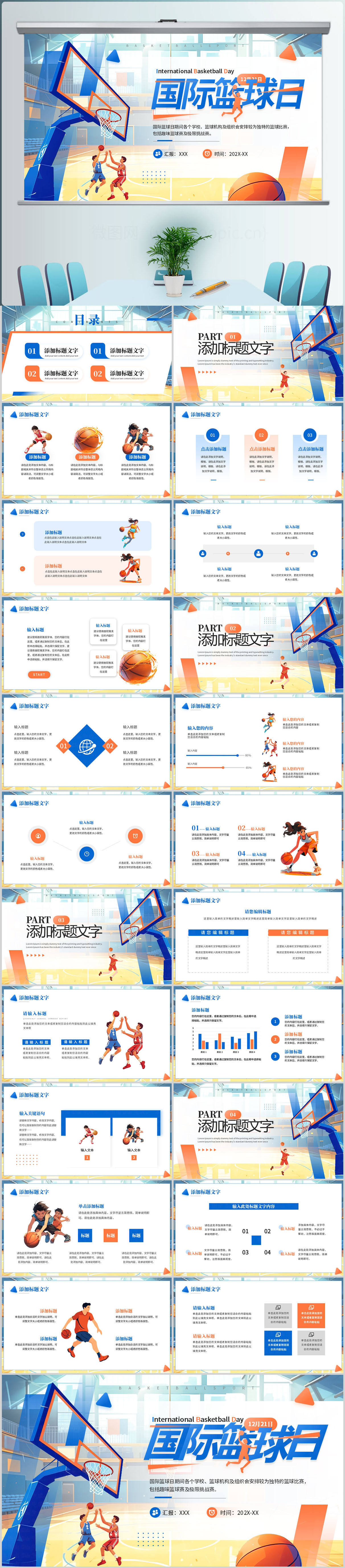 创意国际篮球日PPT模板设计