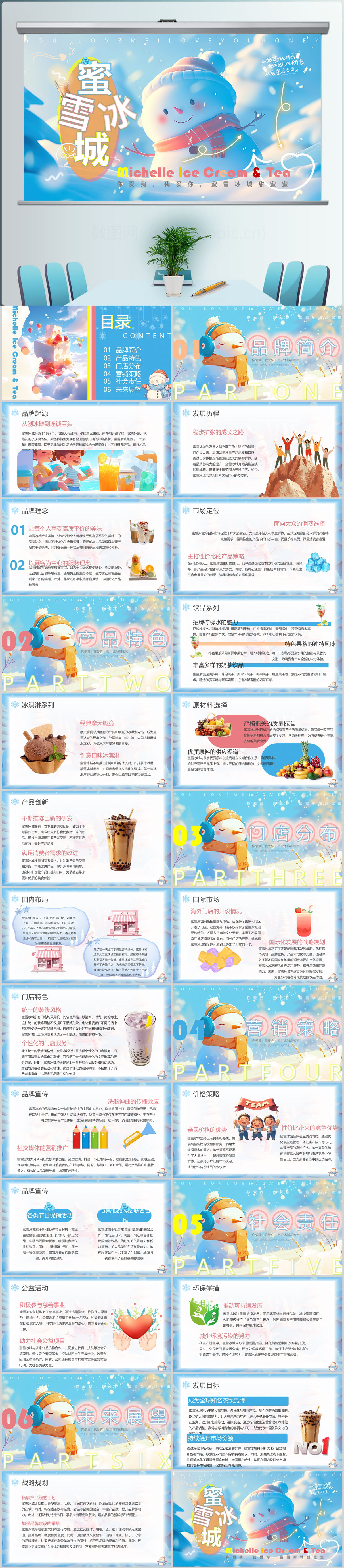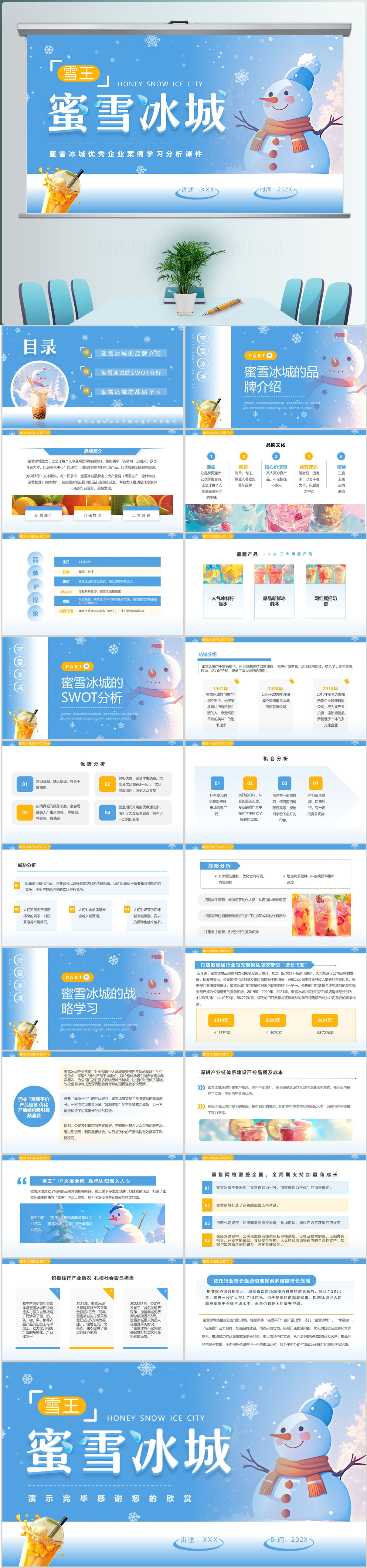 蓝色蜜雪冰城内容介绍宣传课件PPT模板