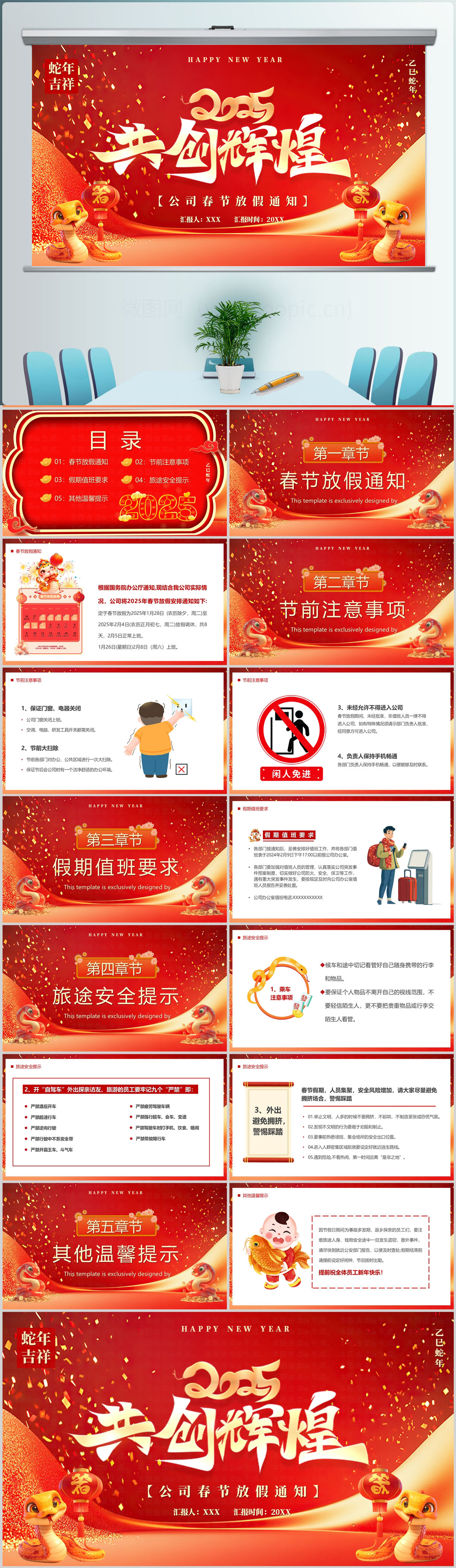 红色2025公司春节放假通知PPT模板设计