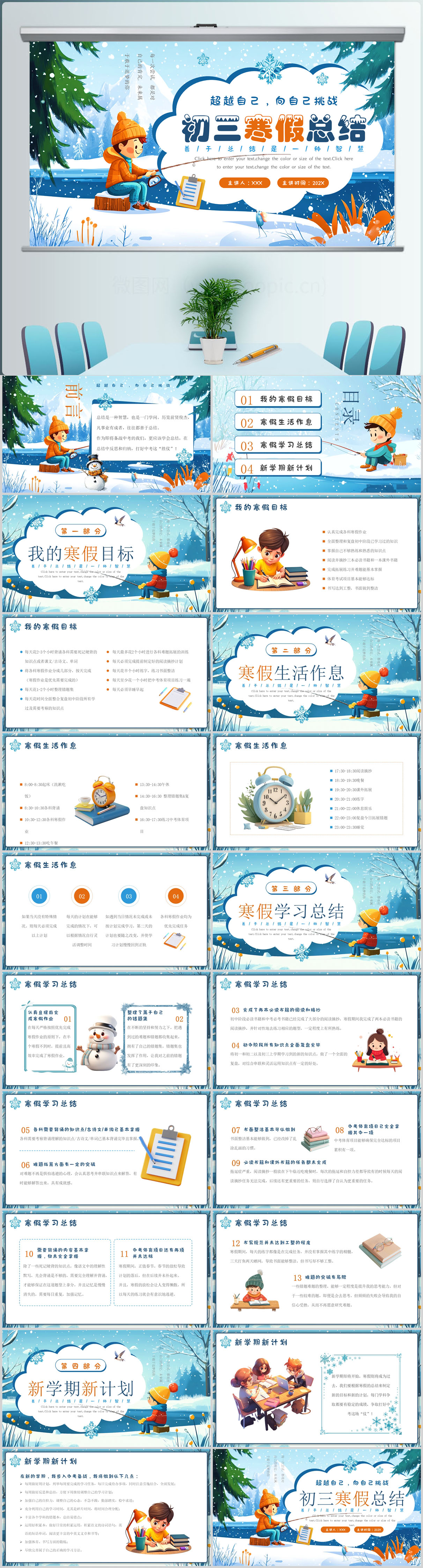 简约初三寒假总结PPT模板设计