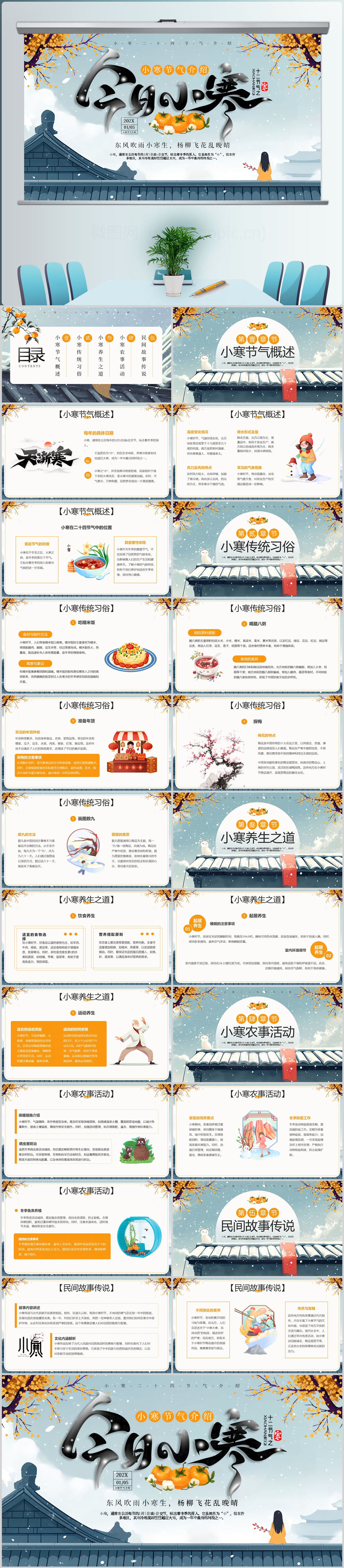传统24节气之小寒介绍PPT模板设计