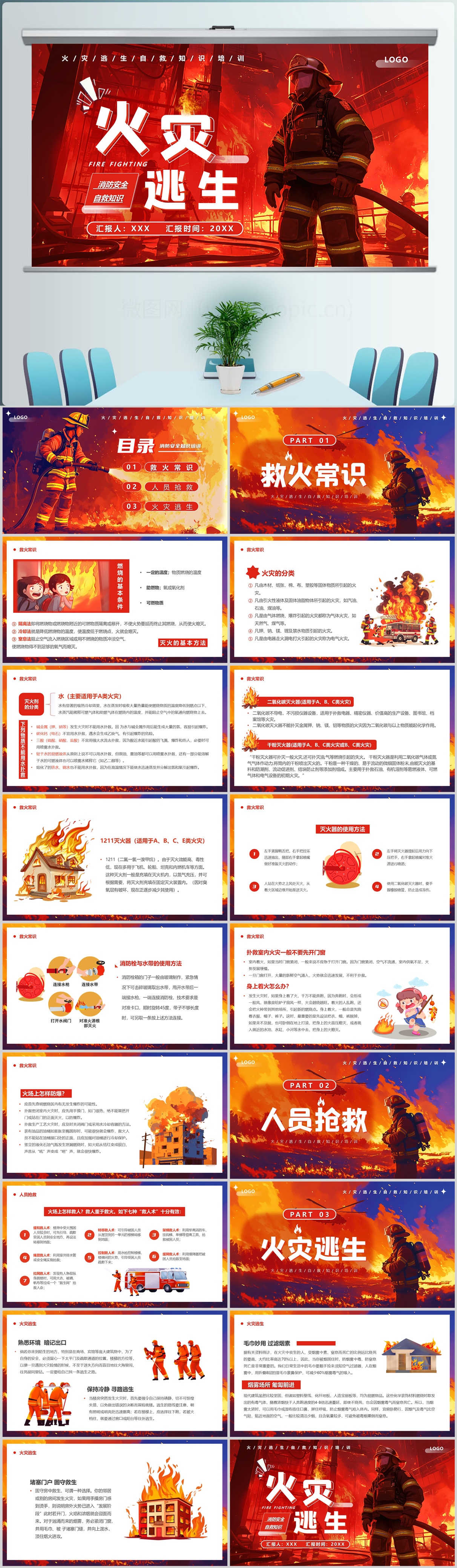 红色119消防宣传日预防火灾逃生消防安全知识培训ppt模板