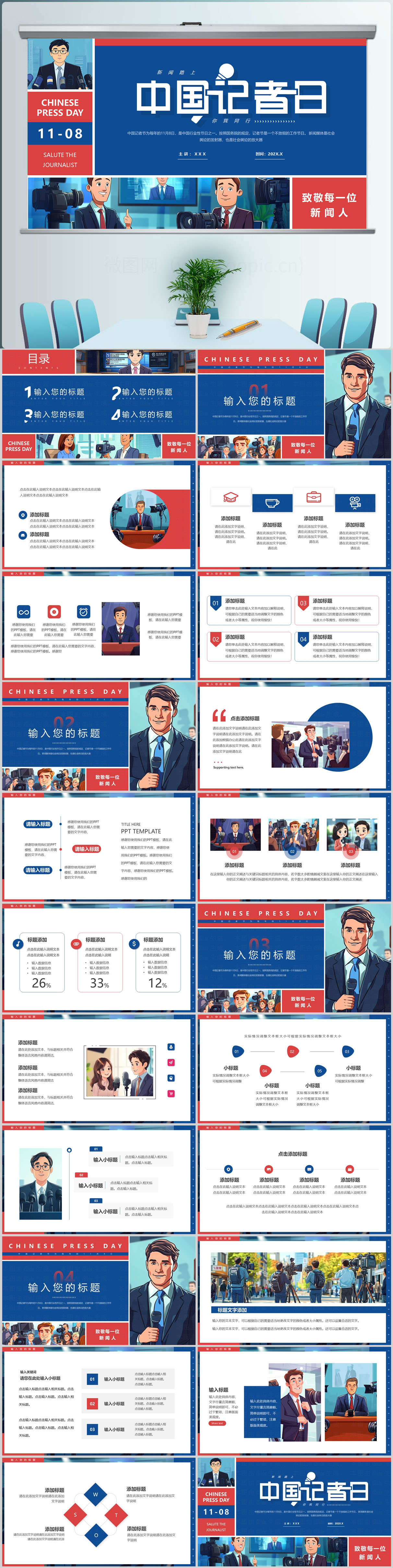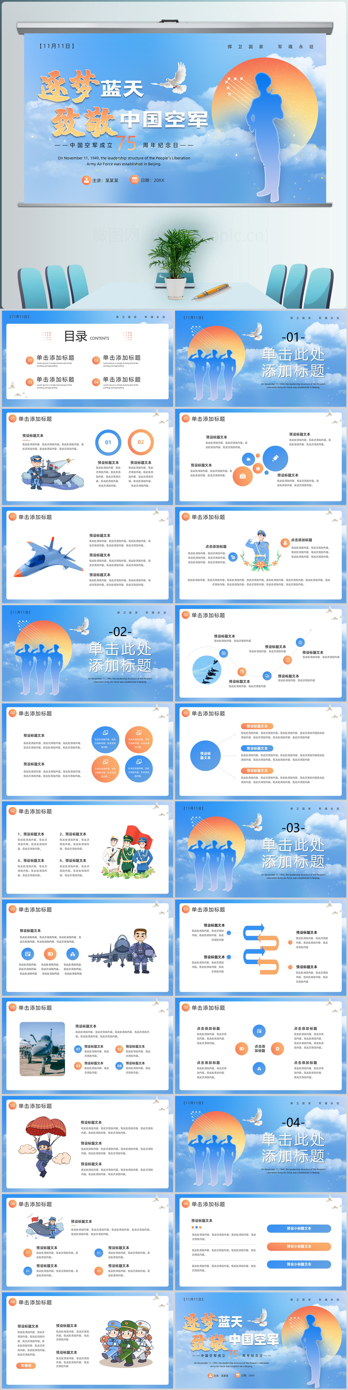 蓝色简约风中国空军成立纪念日通用PPT模板