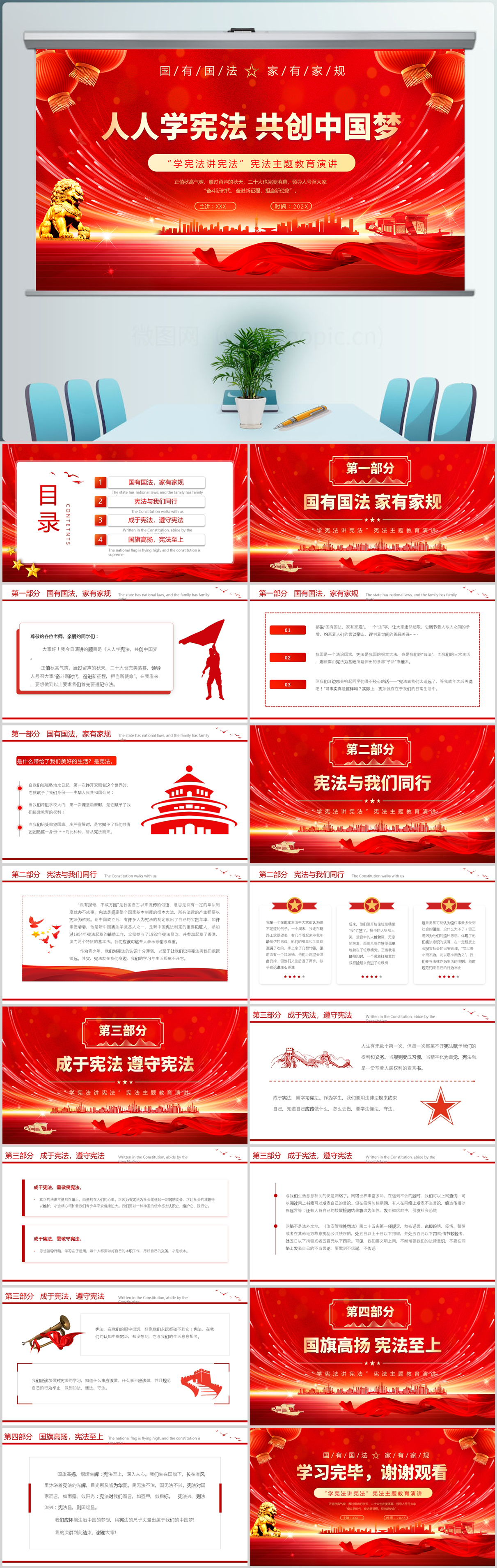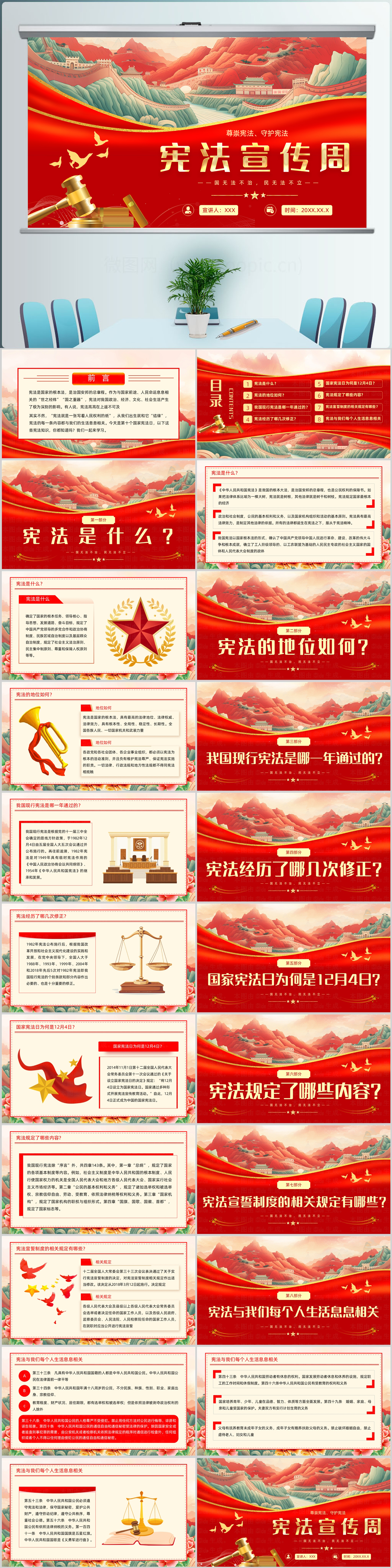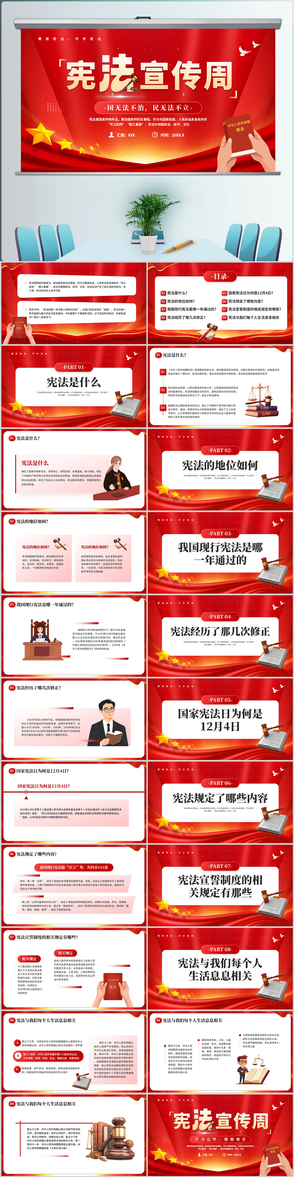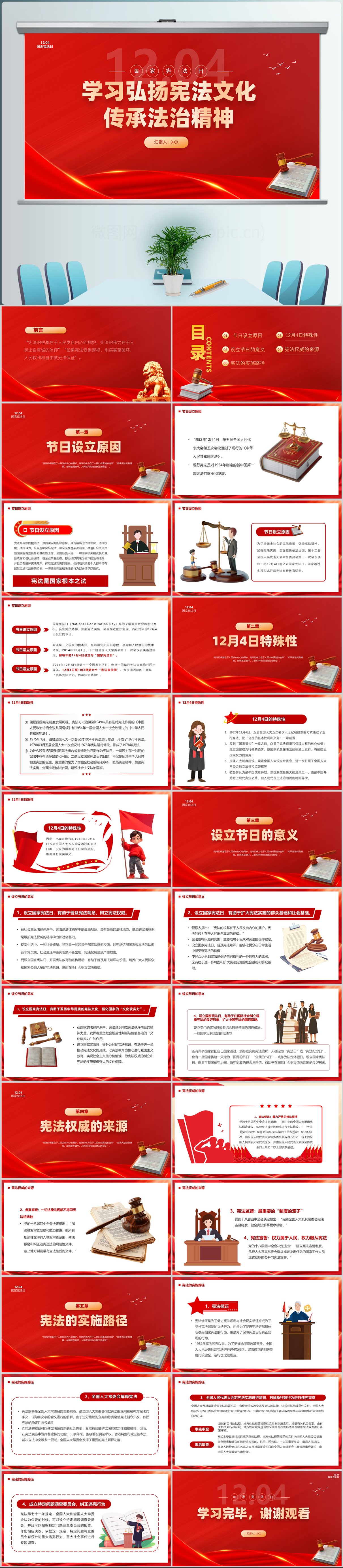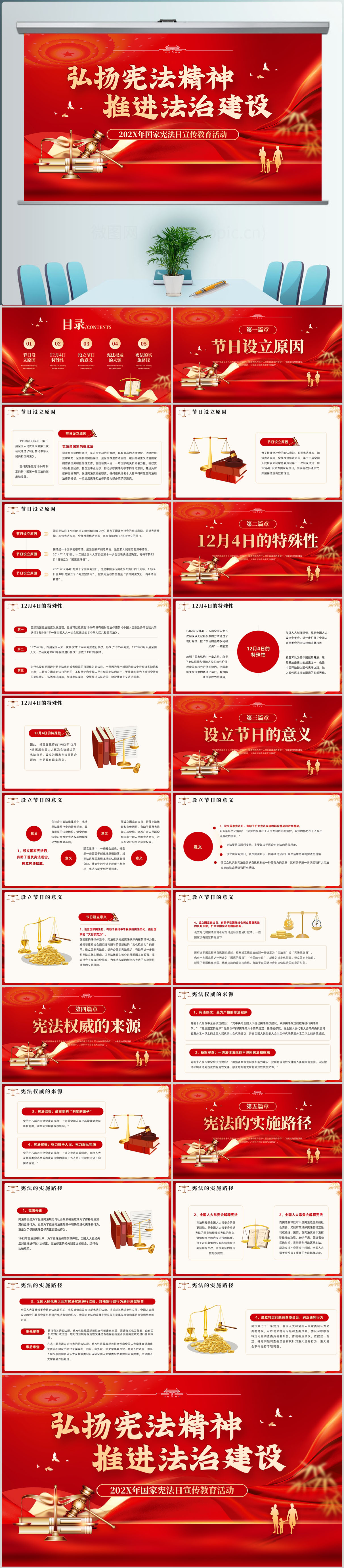 红色大气弘扬宪法精神12.4国家宪法日主题介绍ppt模板