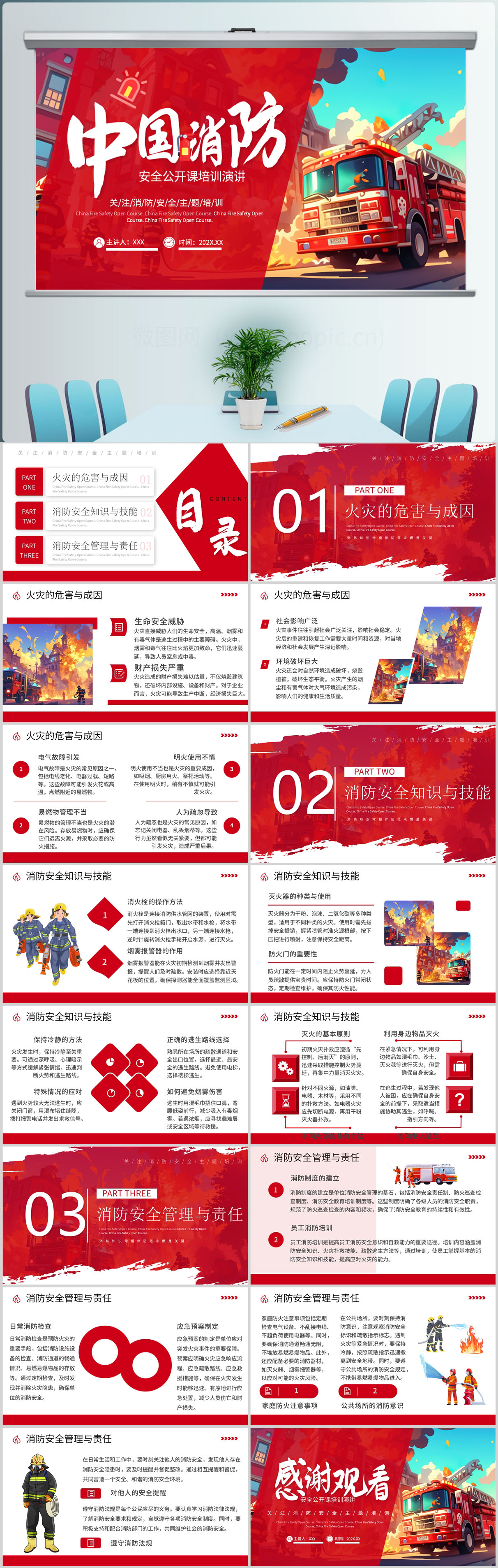 红色119消防日宣传中国消防安全公开课培训课件ppt模板