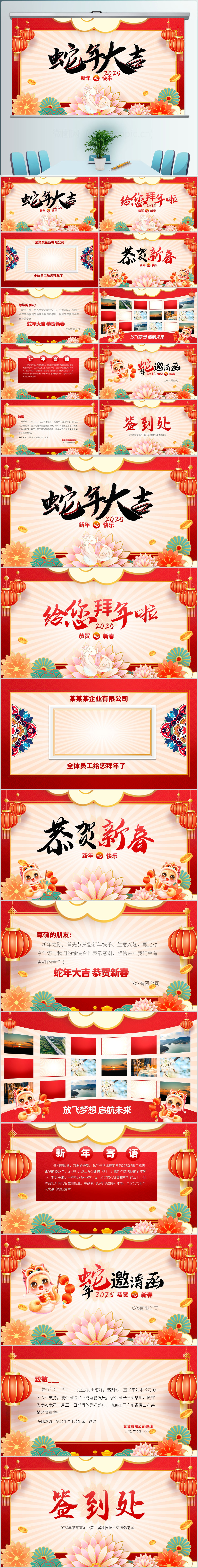 2025中国风蛇年邀请函新年大吉新年贺卡拜年视频开场PPT模板