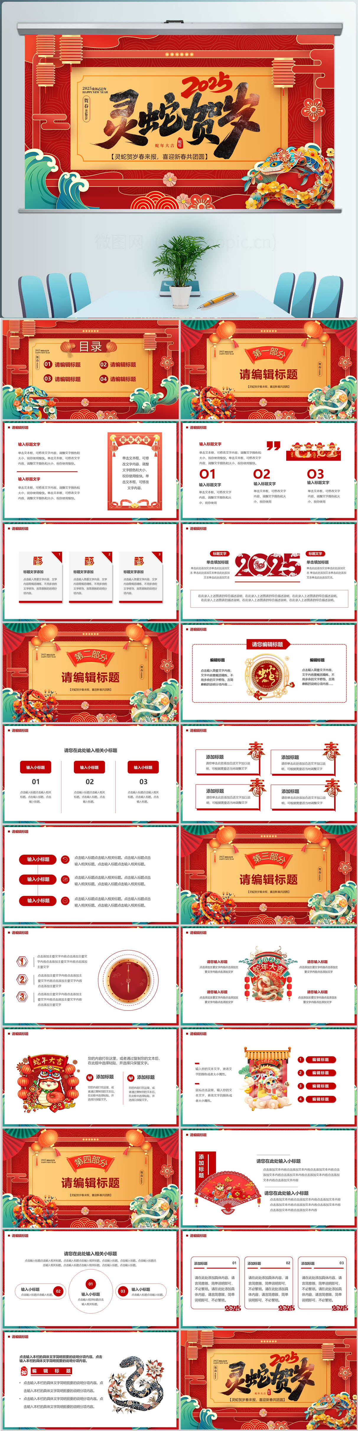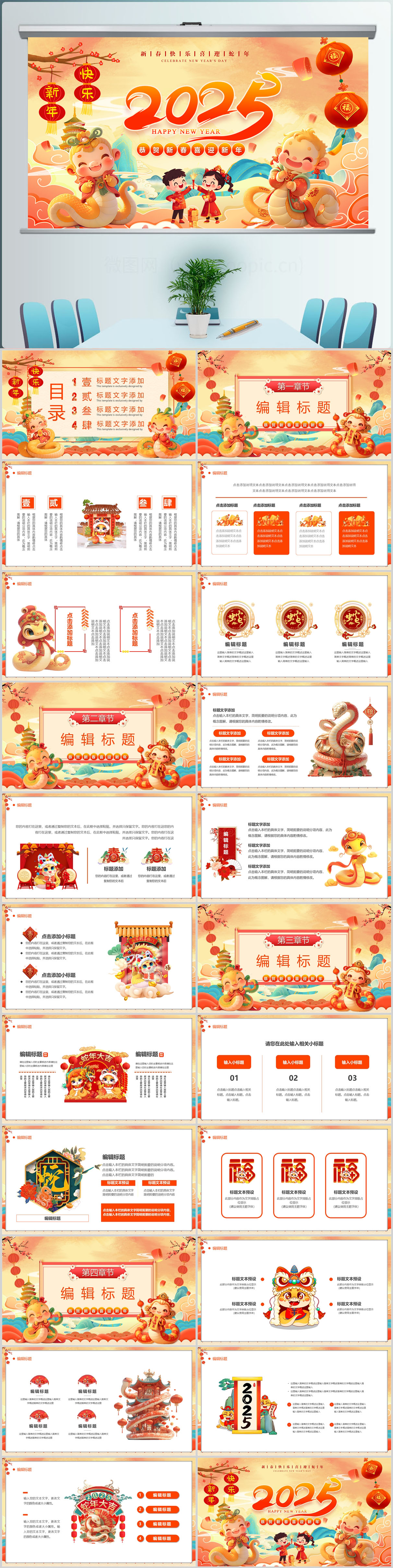 2025蛇年恭贺新春喜迎新年快乐通用ppt模板