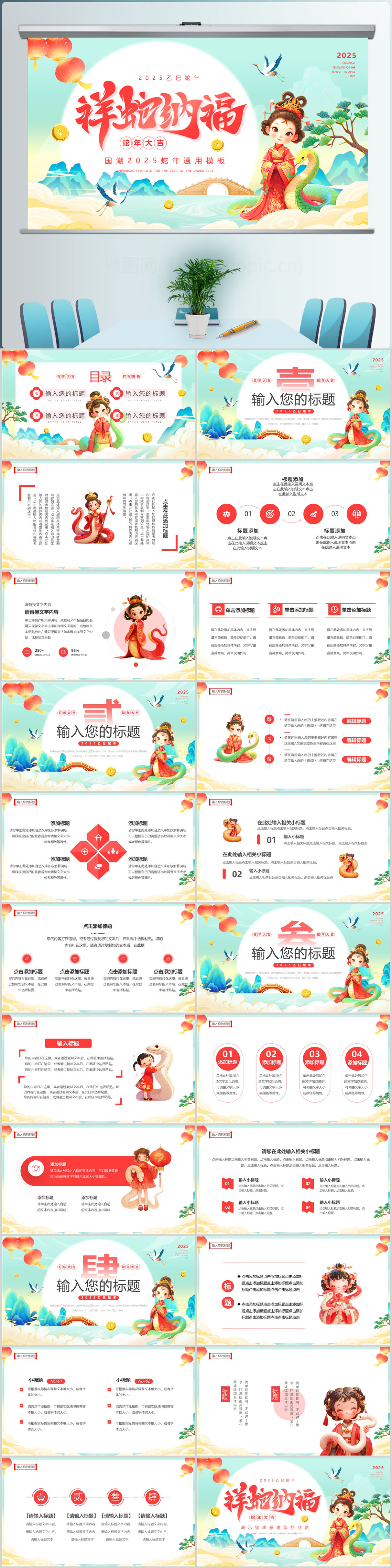 2025国潮风祥蛇纳福新年计划通用ppt模板