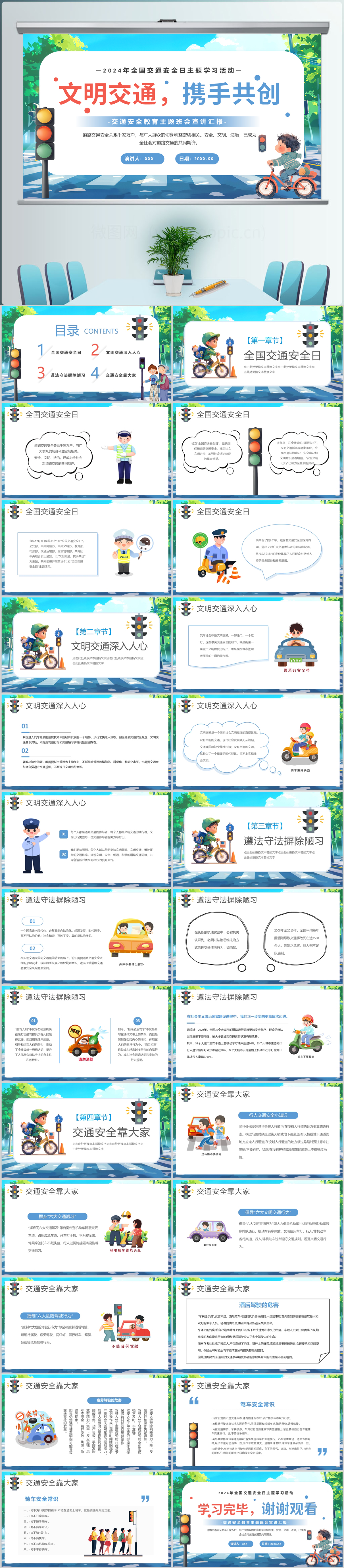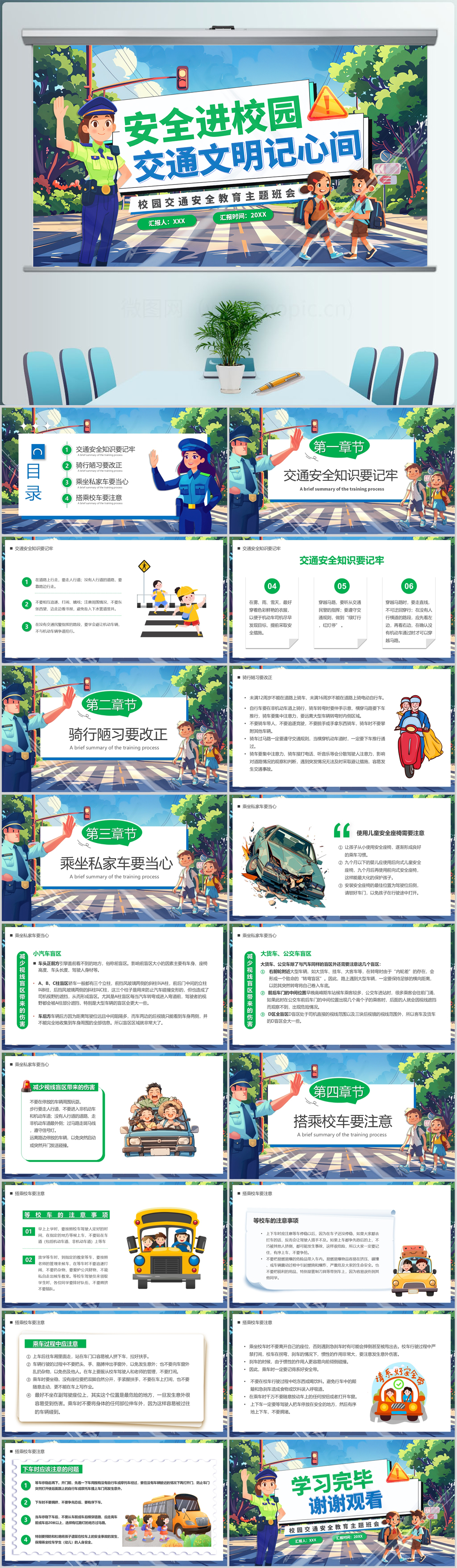 2024卡通校园交通安全教育主题班会课件ppt模板