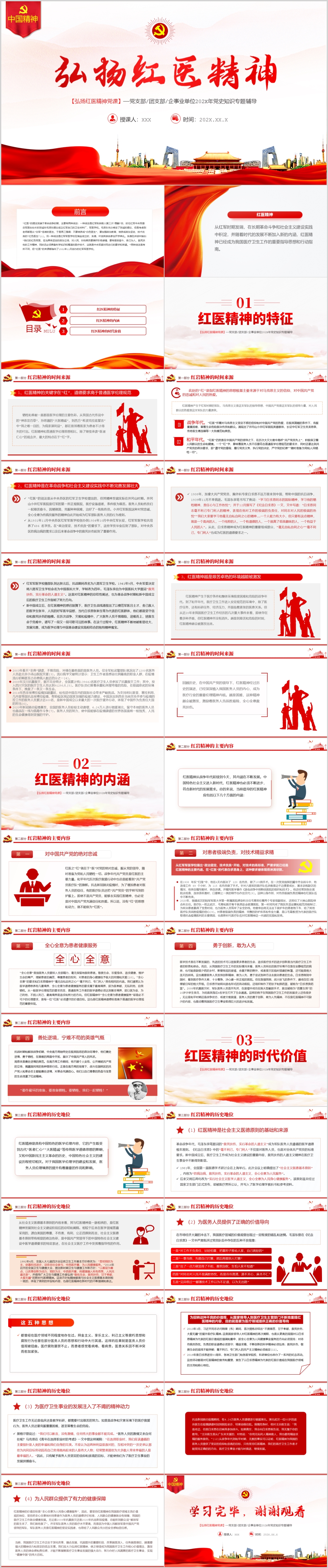 学习红色革命精神弘扬红医精神党员主题教育党课ppt模板(内含WORD演讲稿)