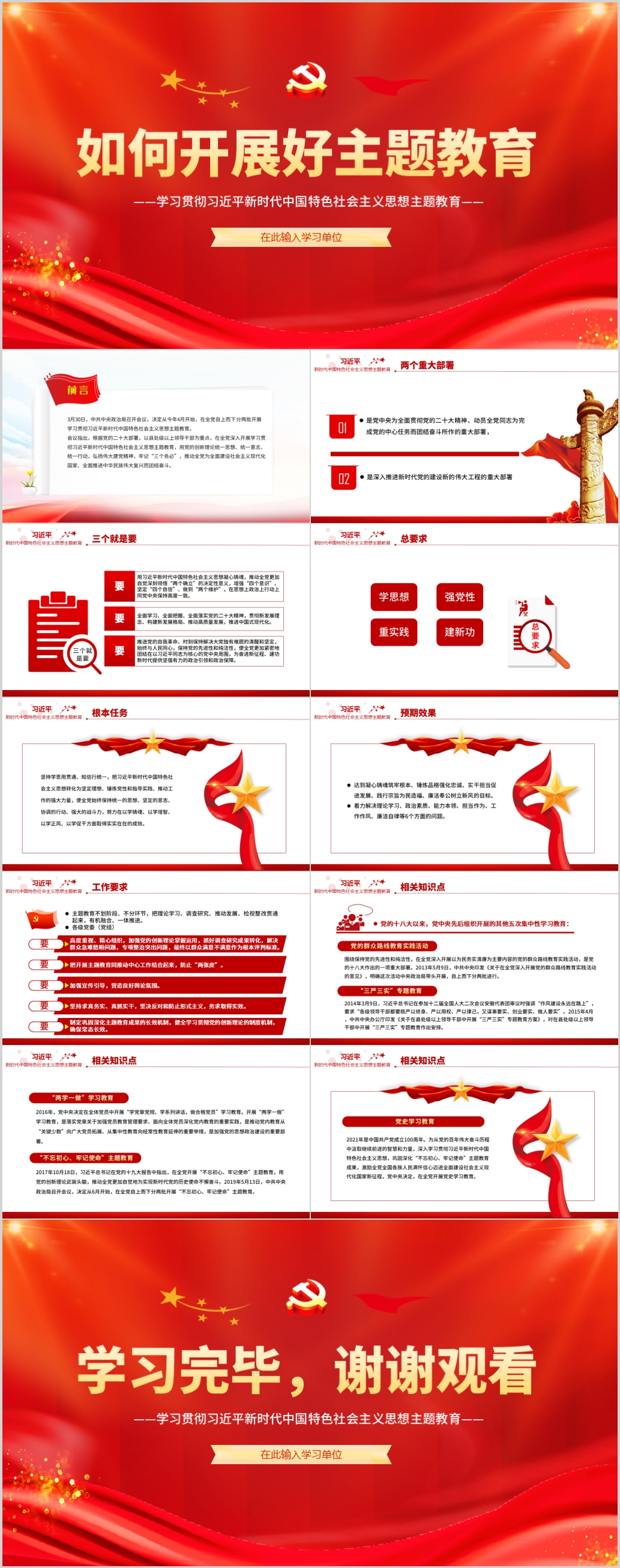 2023年如何开展新时代中国特色社会主义思想主题教育党员培训党课PPT模板(内