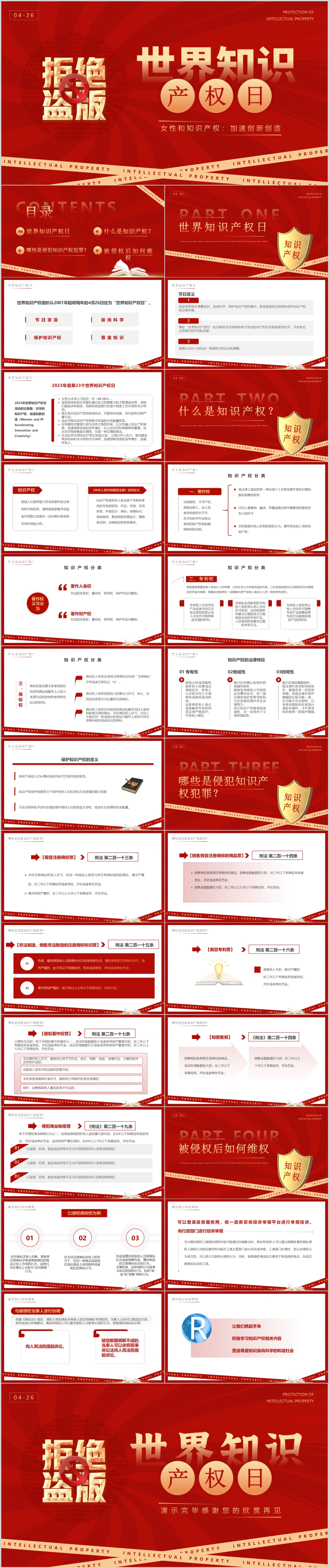 2023年红色426世界知识产权日普法教育培训课件ppt模板