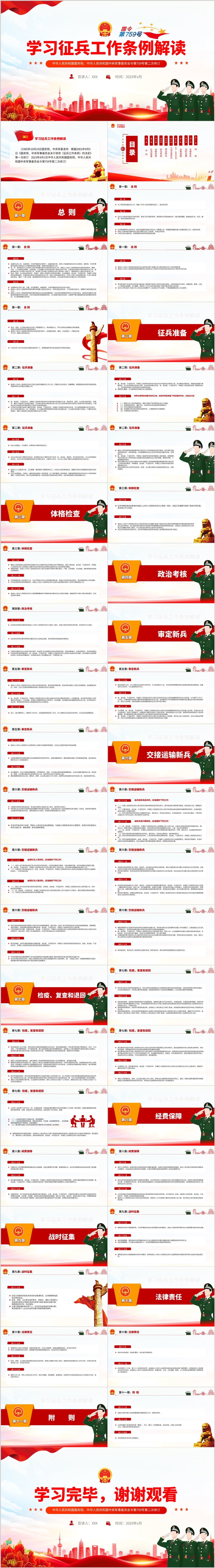 新版征兵工作条例学习解读党课ppt模板(内含WORD演讲稿)