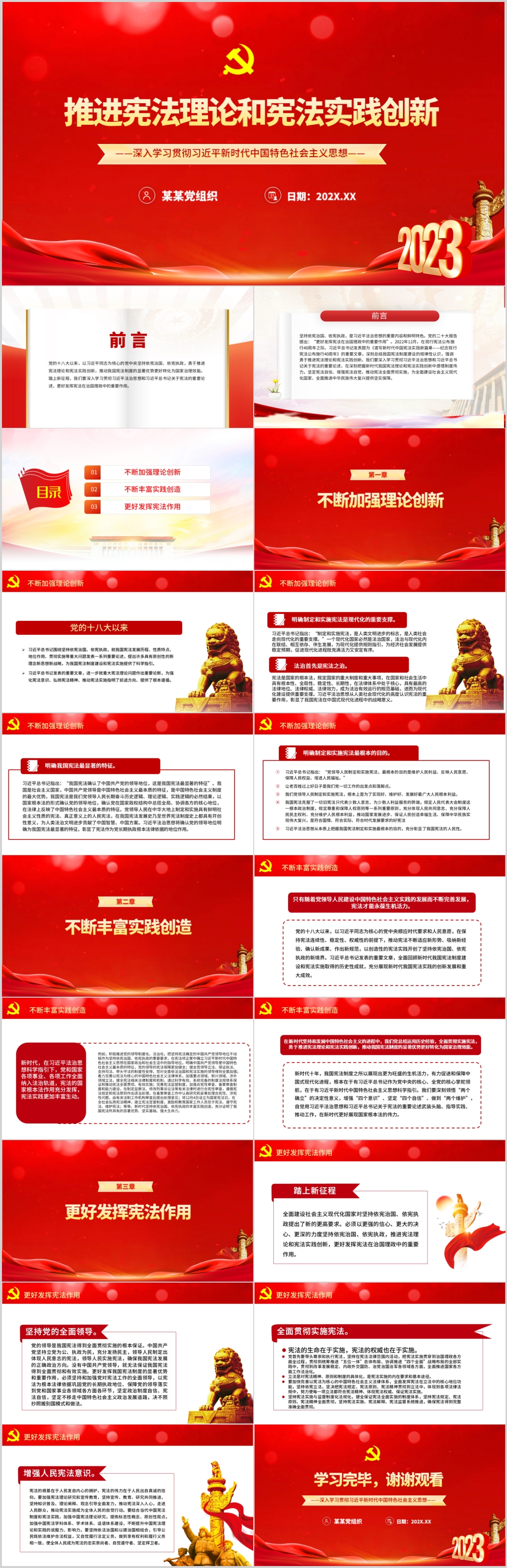 2023年推进宪法理论和宪法实践创新主题教育党员培训党课ppt模板(含word演讲稿
