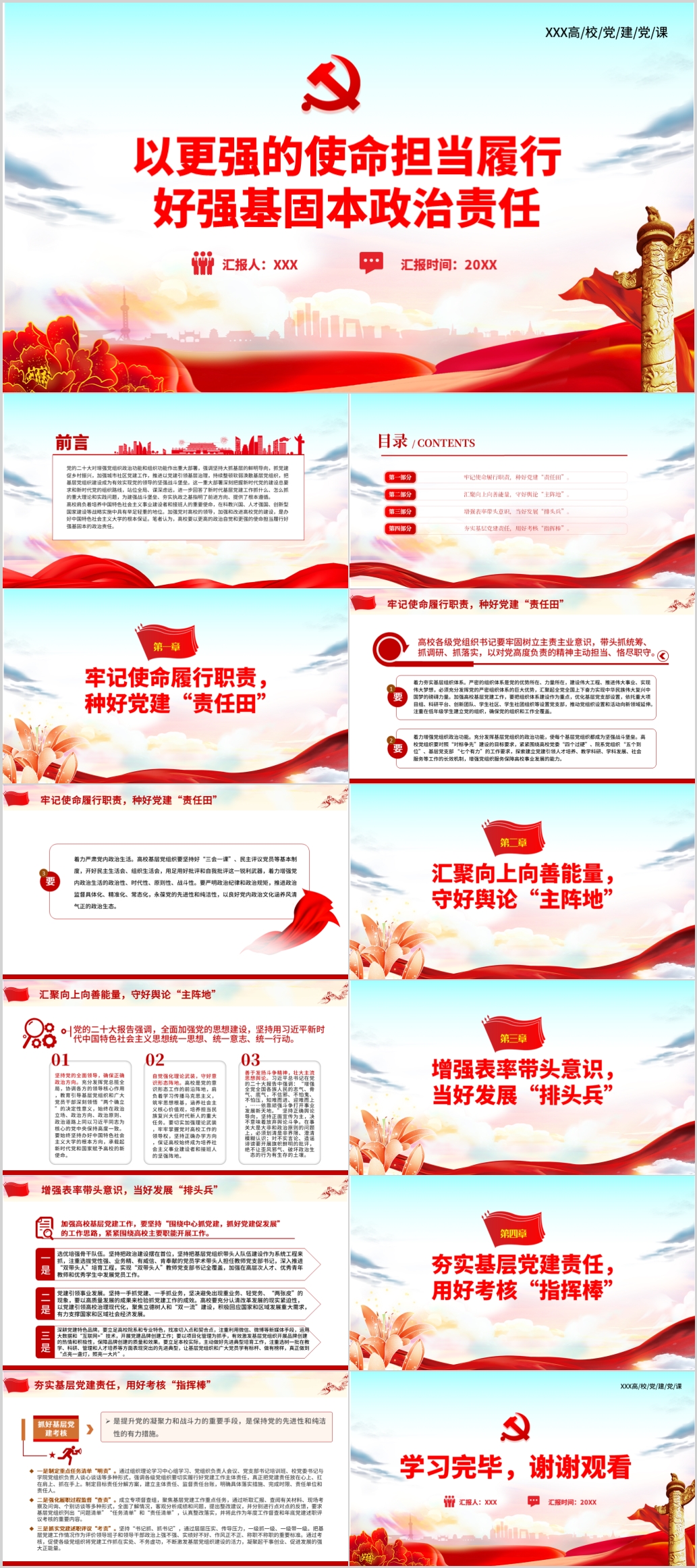 2023年以更强的使命担当履行政治责任高校党课ppt模板(内含WORD演讲稿)