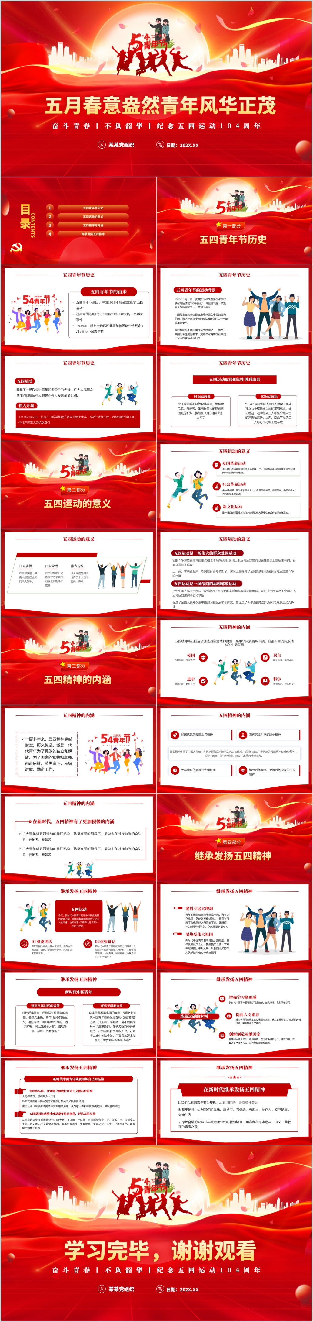 纪念五四青年节五四运动104周年共青团团支部团课ppt模板