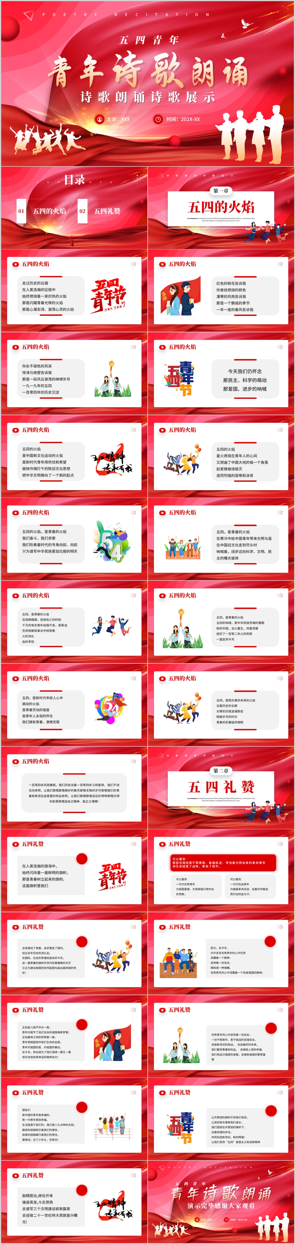 2023年共青团五四运动五四青年节诗歌朗诵ppt模板