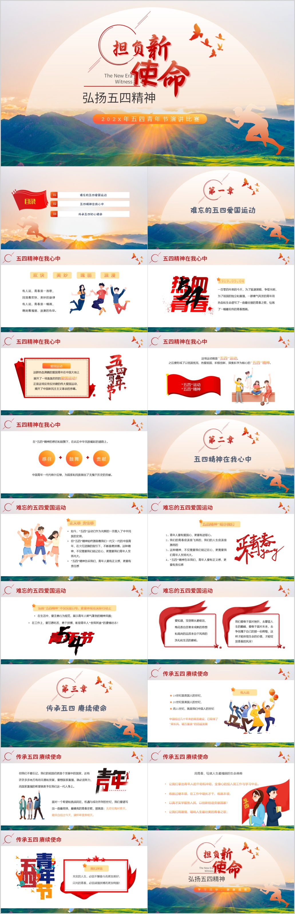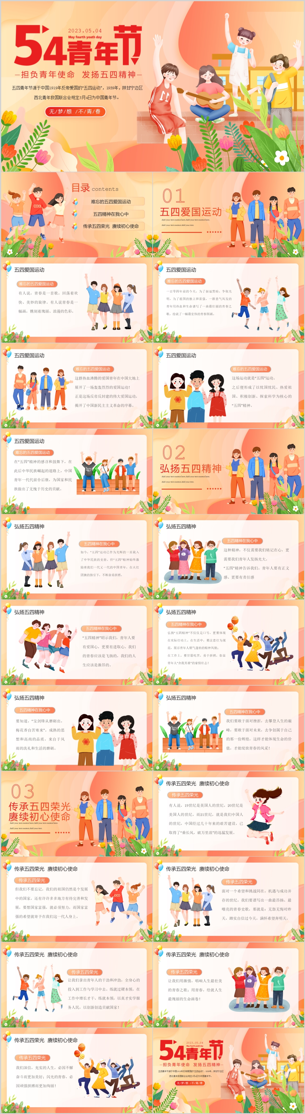2023弘扬五四精神担负新时代青年使命专题团课PPT模板